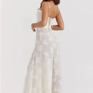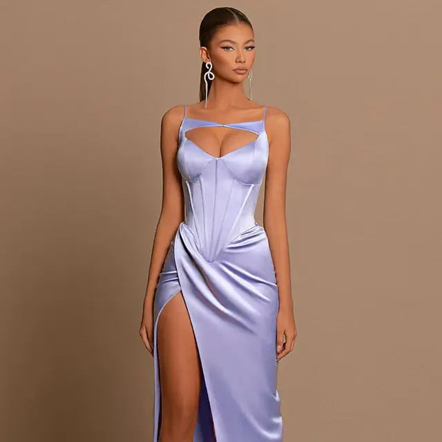 Two glamorous women lying on a luxurious satin surface, posing elegantly. One is dressed in a white outfit with a bold gold necklace, while the other wears a black embellished dress. Their makeup is flawless, featuring bold red lips and defined eyes, creating a high-fashion, sophisticated aesthetic.