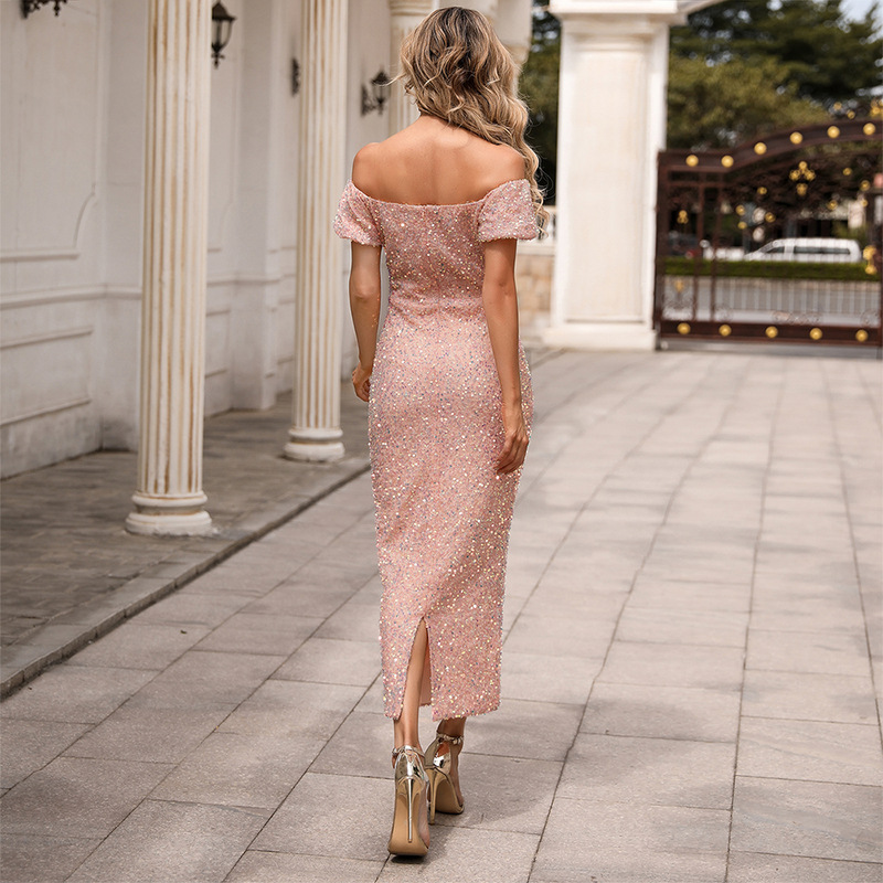 2021 New New Banquet Dinner Suit Women Sequined off-Shoulder Dress Female
