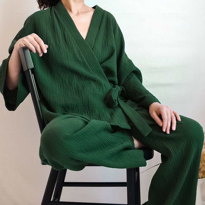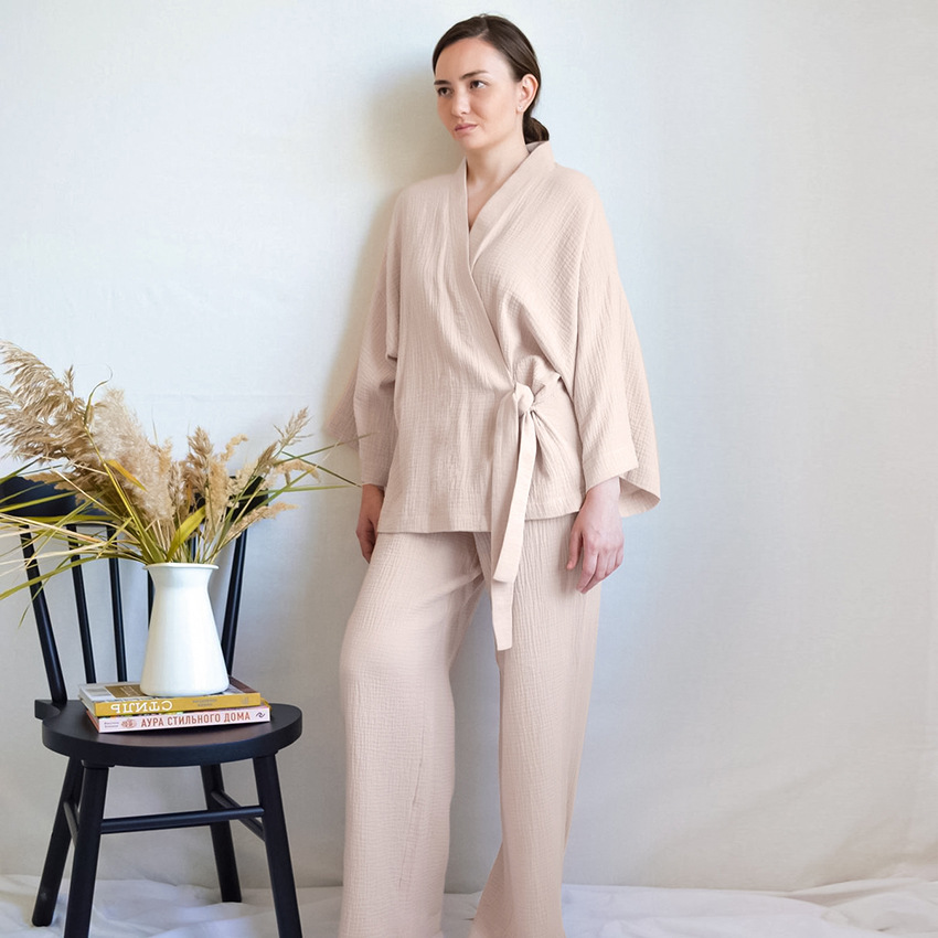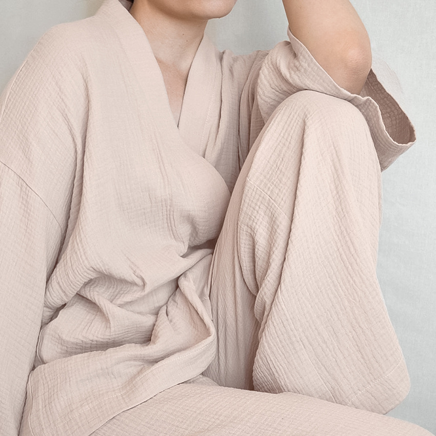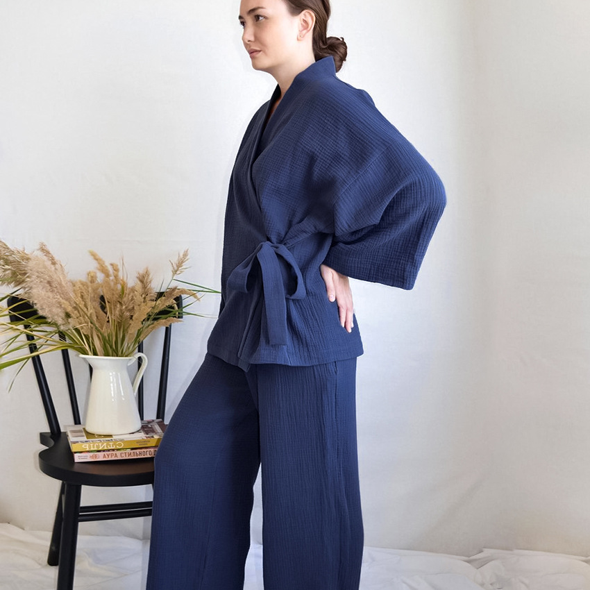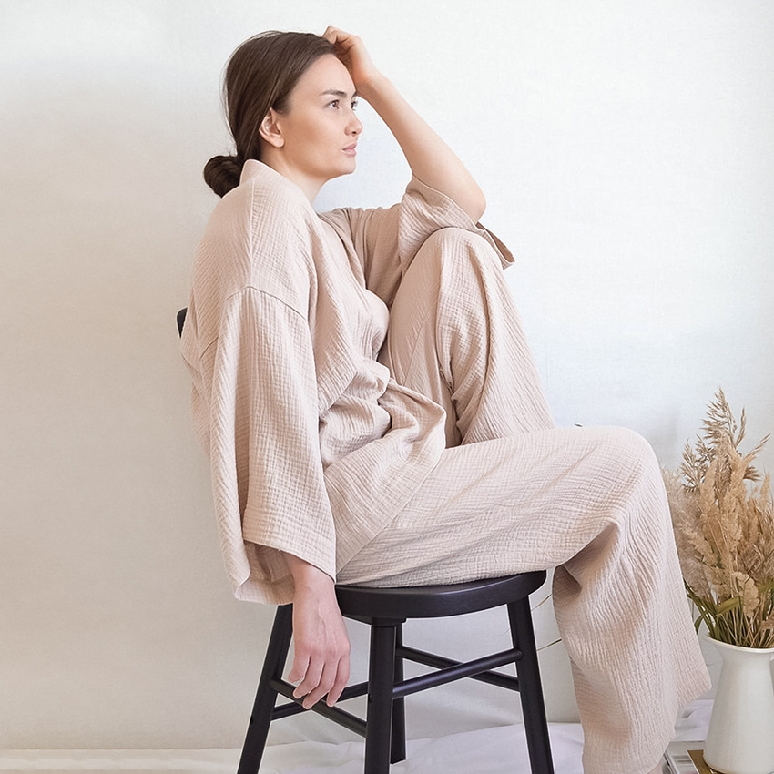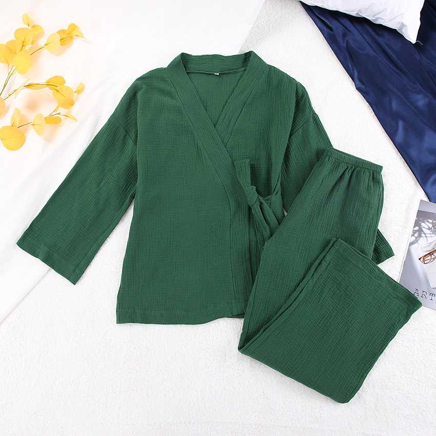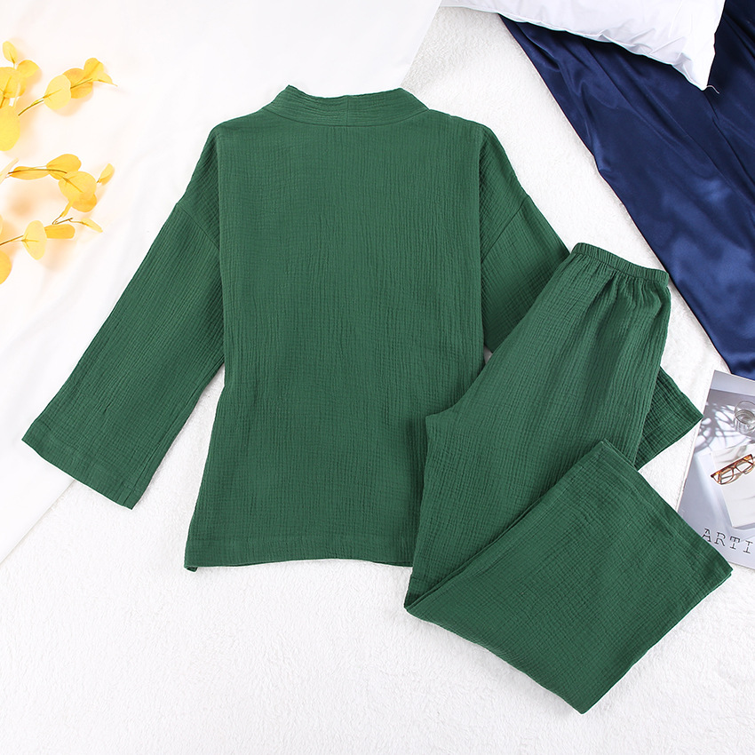 2022 Early Spring Solid Color Pajamas Suit Casual Loose Trousers Nightgown Cardigan Cotton Fashion Home Wear Women