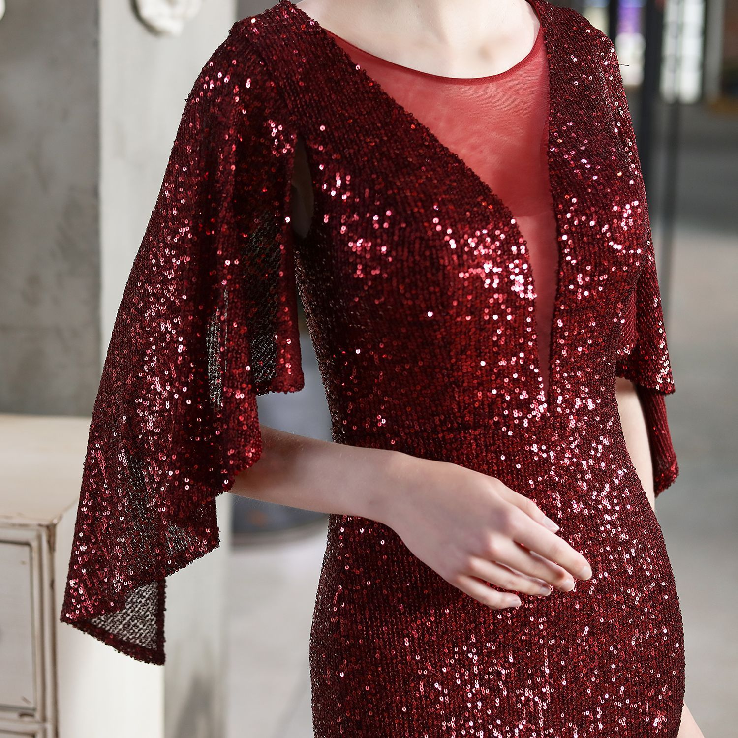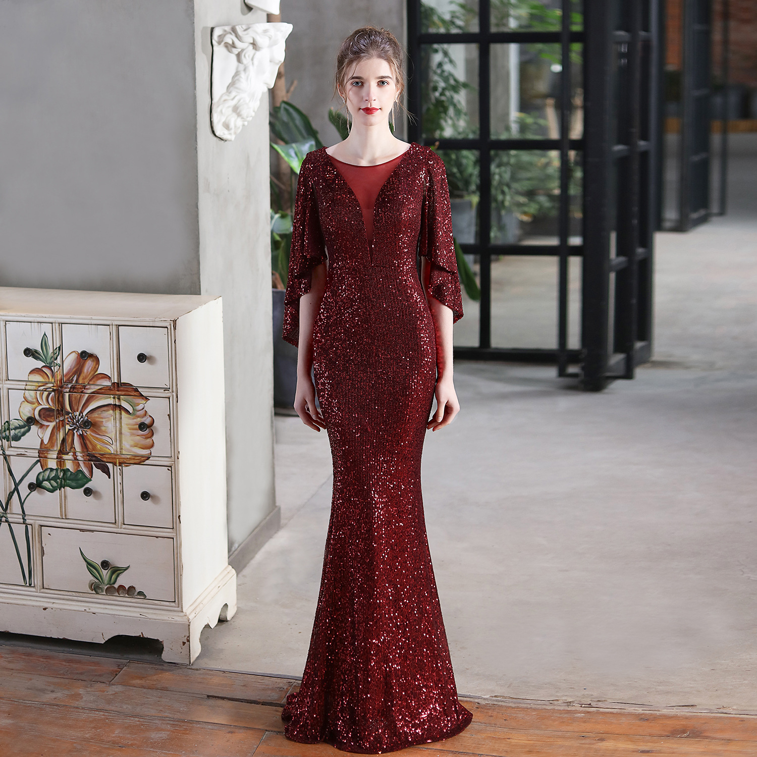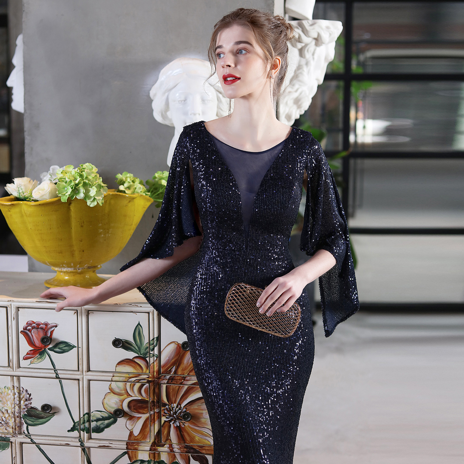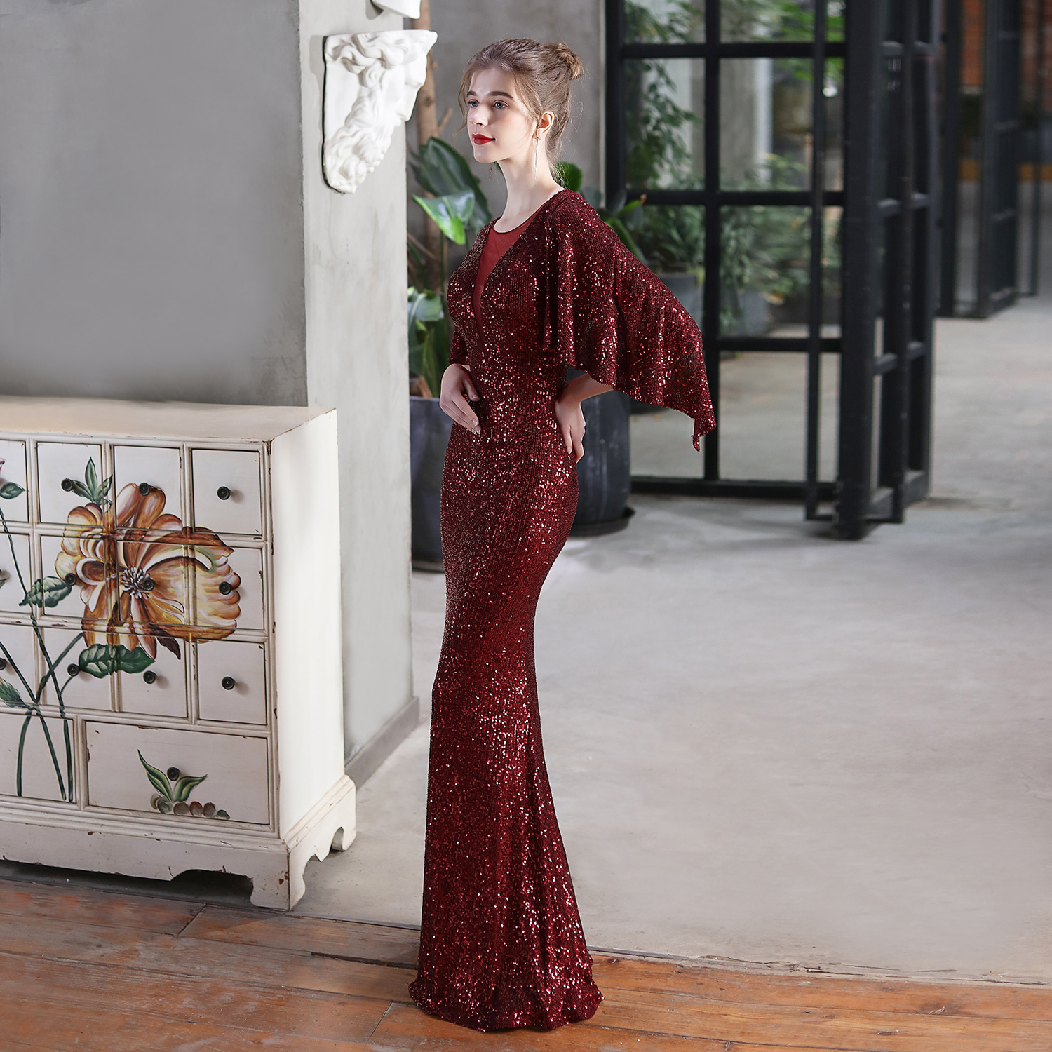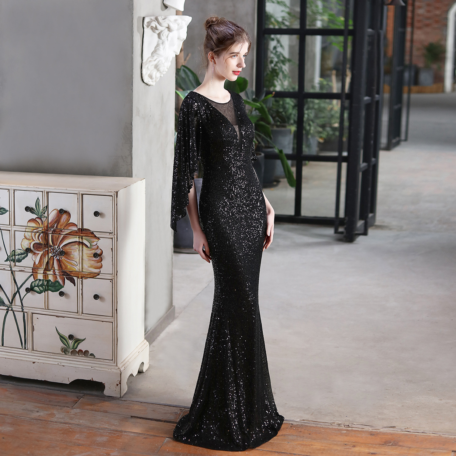Angel Wings Sequined Fishtail Banquet Elegant Graceful Annual Meeting Host Car Model Party Dress Female Summer