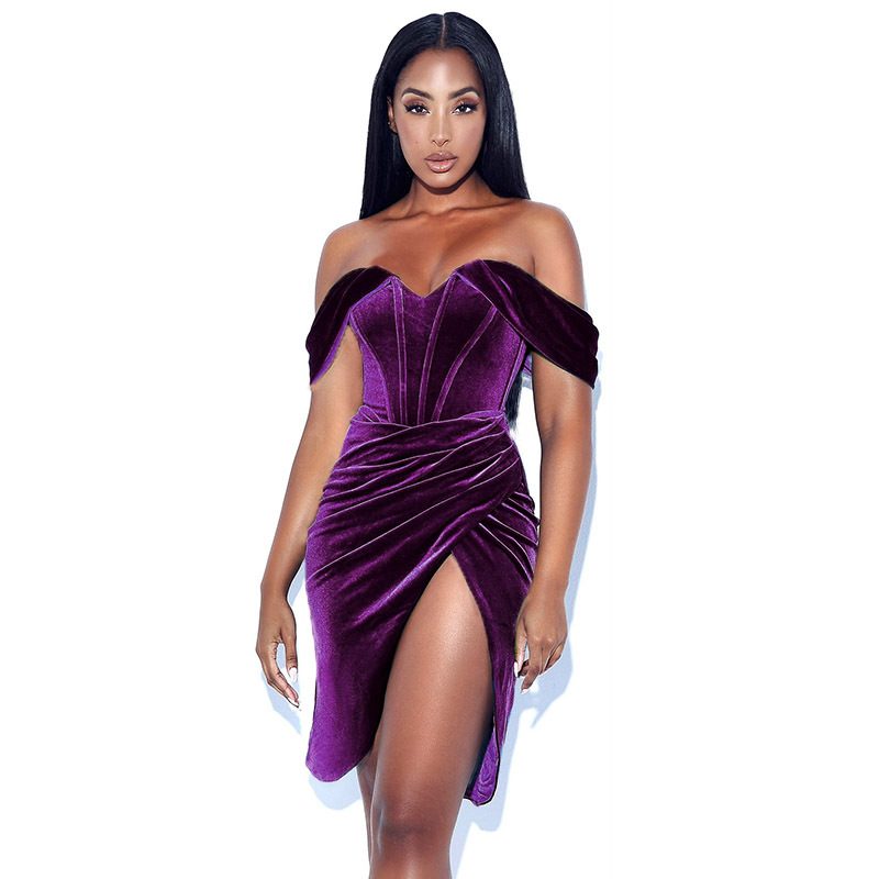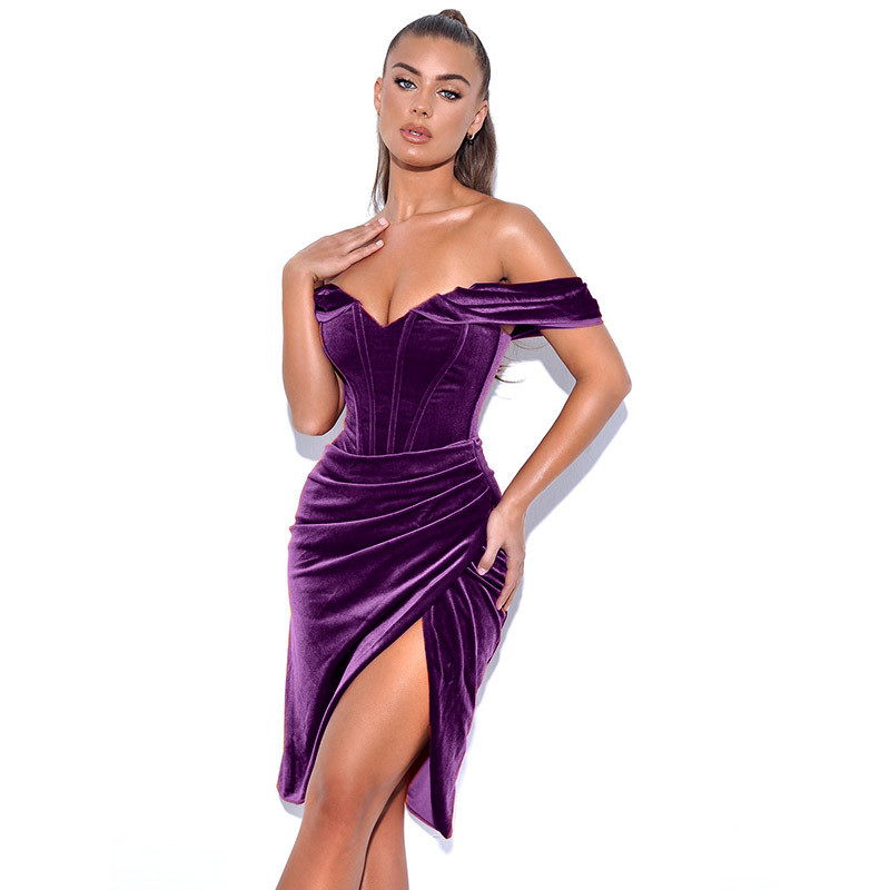 Autumn Korean Velvet Sexy Slit Dress Style Elegant Evening Dress Women Dress