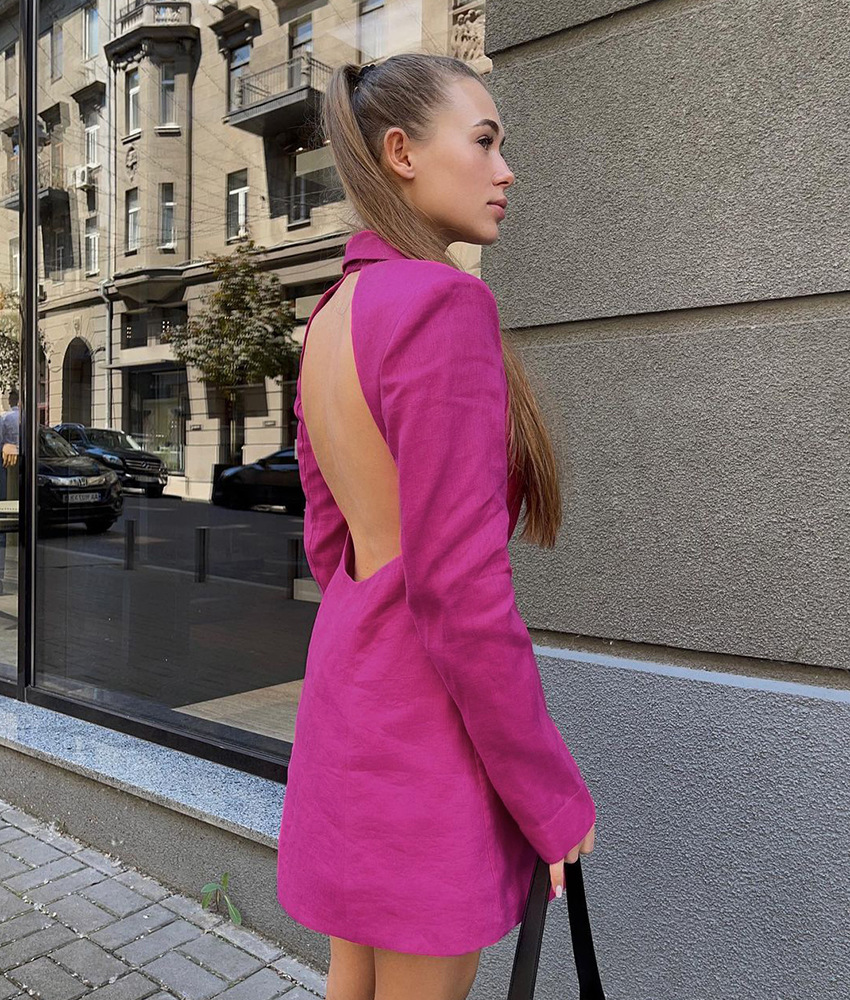 Autumn Winter Dress Sexy Backless Suit Collar Long Sleeve Slim Slimming Elegant Cotton Short Skirt Women Clothing