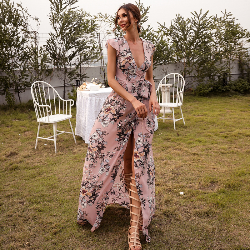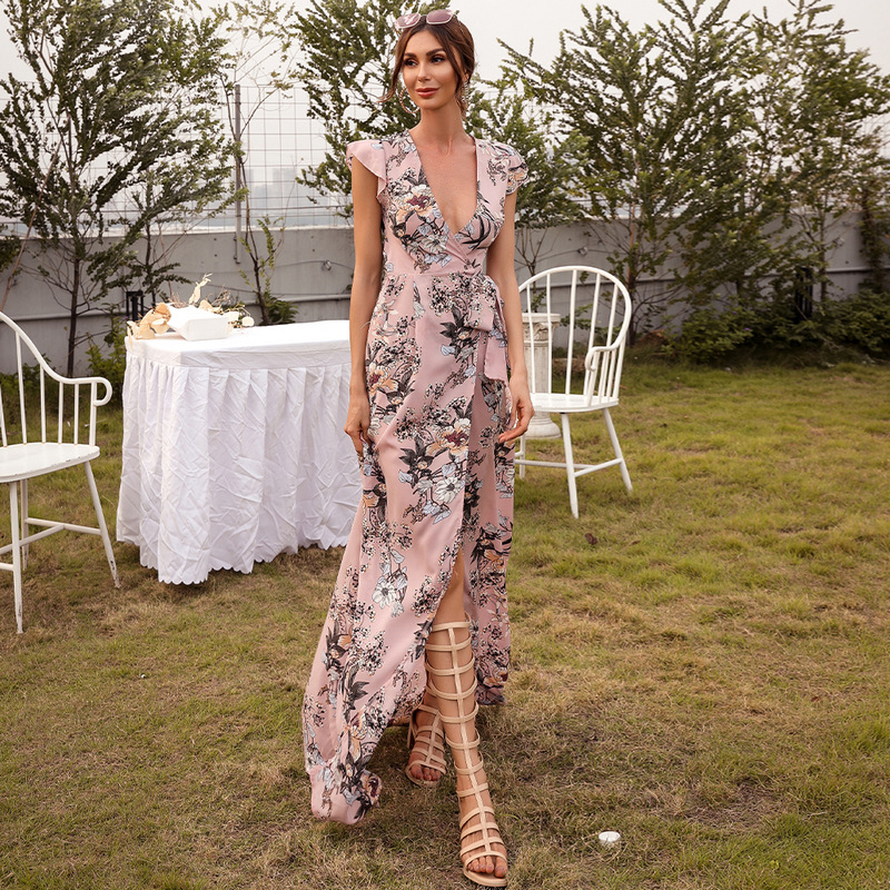 Bohemian Vacation Style Chiffon Printed Dress V-neck Sleeveless Summer Dress 2021 New Women Dress Mid-Length