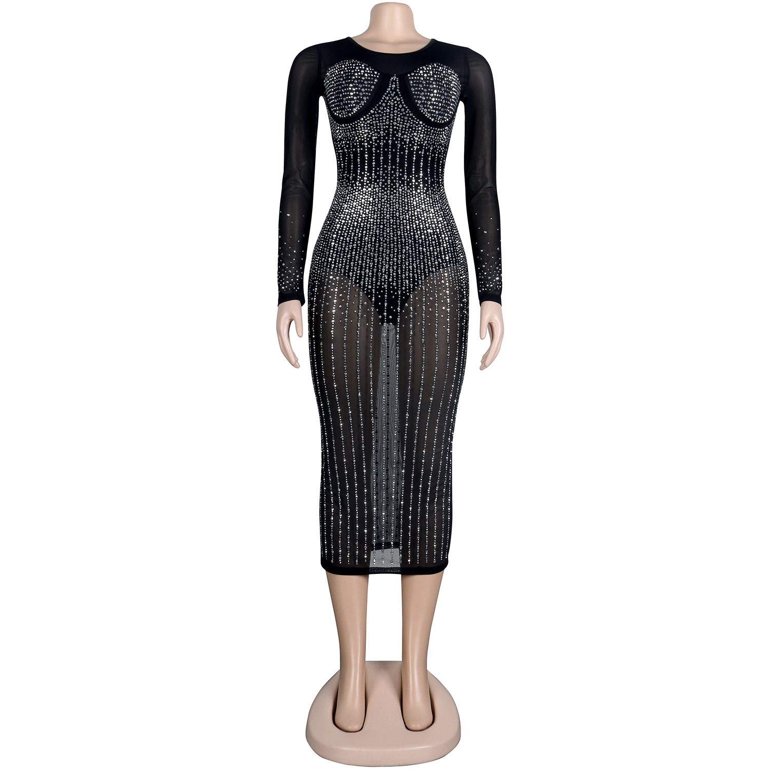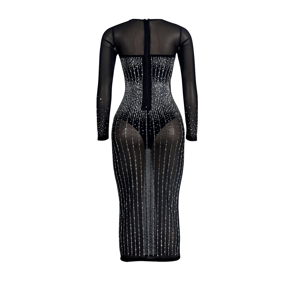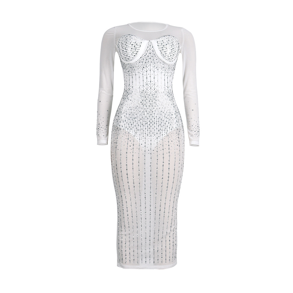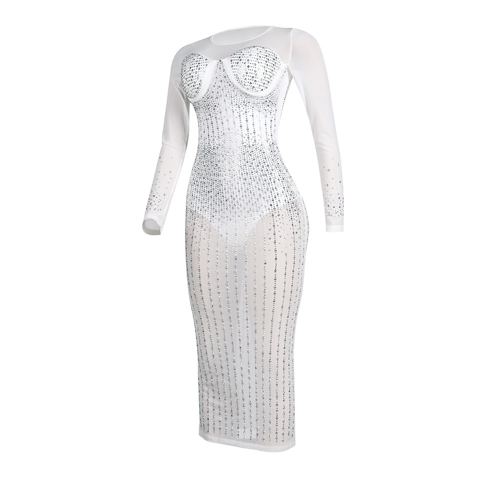 Diamond Long Sleeve Dress Nightclub Uniforms Plus size