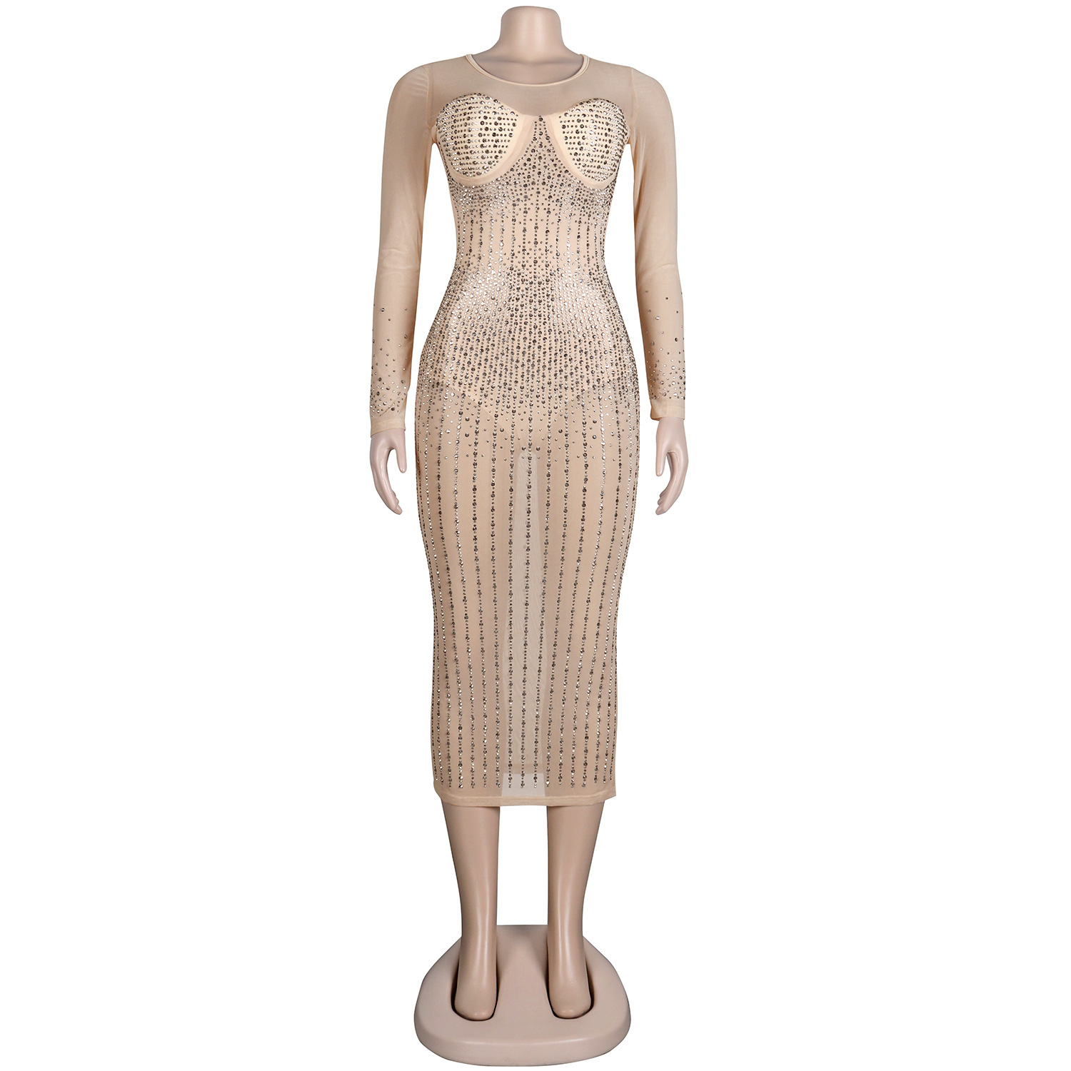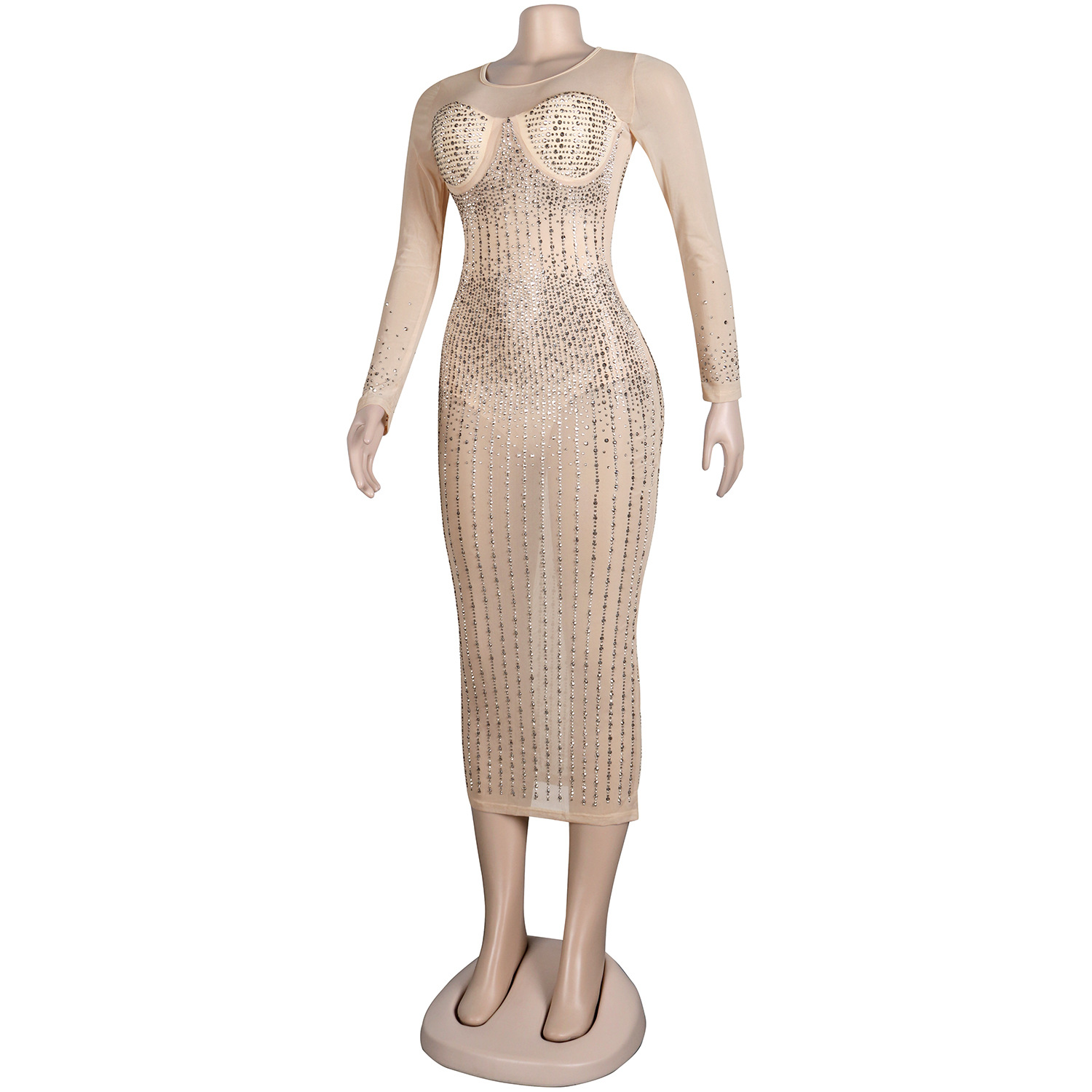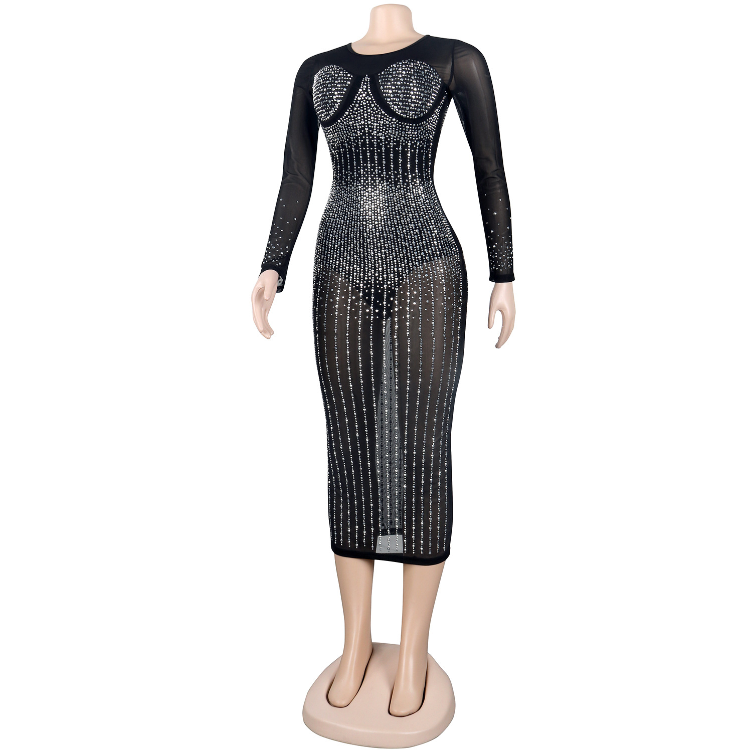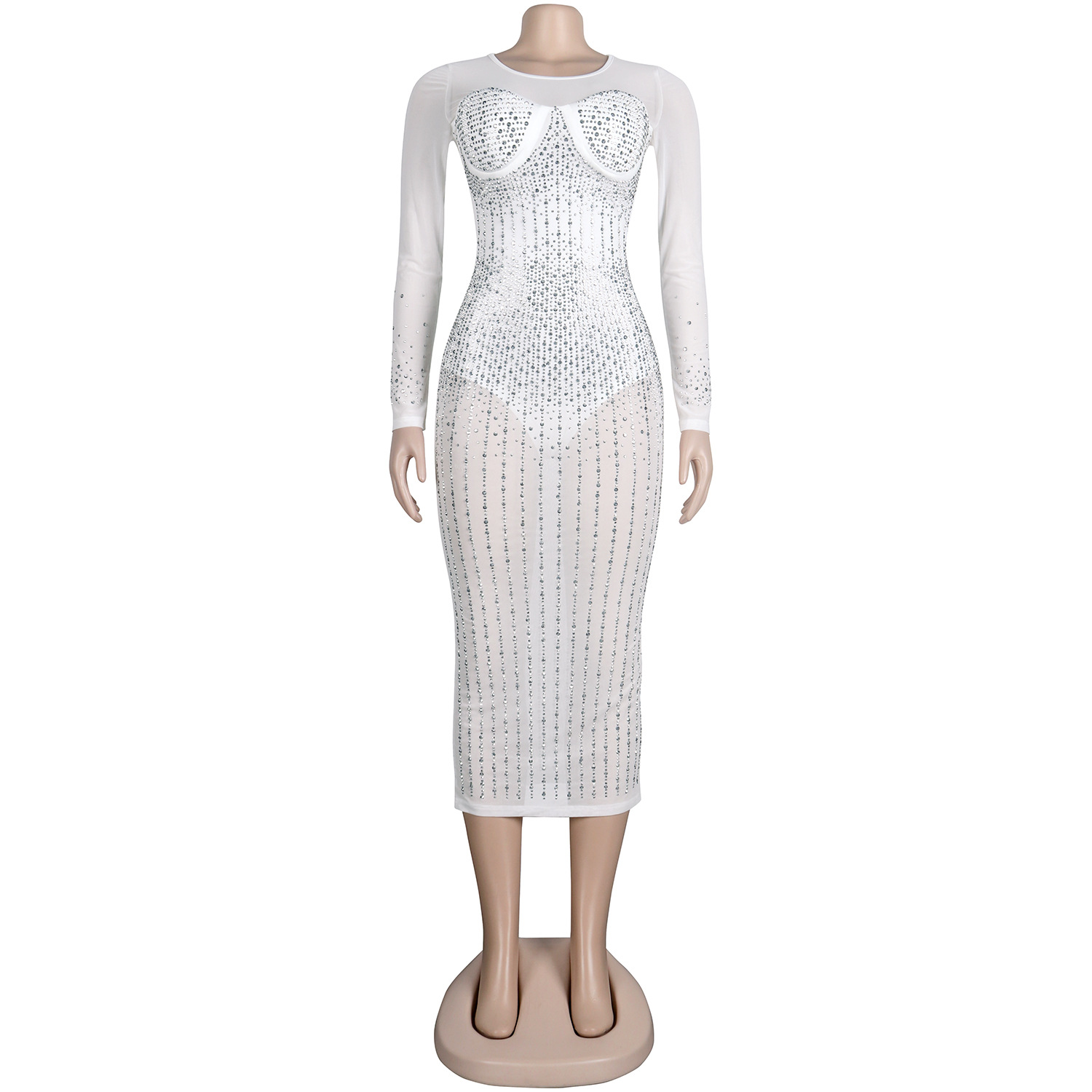 Diamond Long Sleeve Dress Nightclub Uniforms Plus size