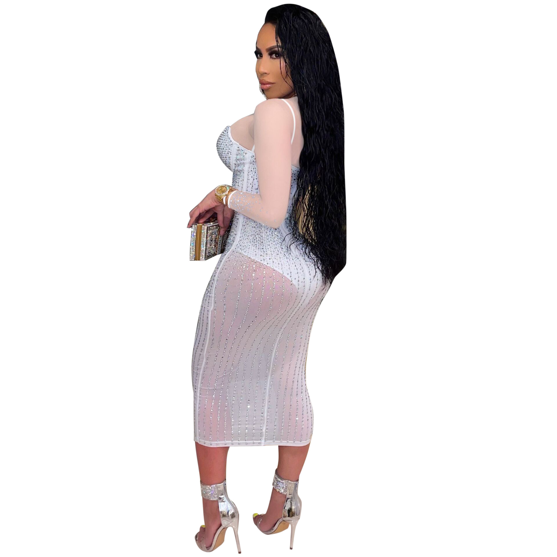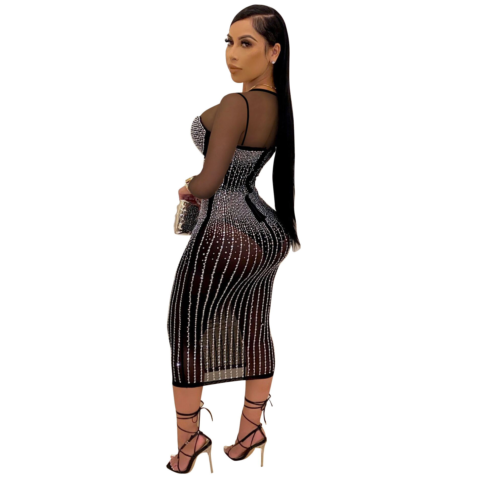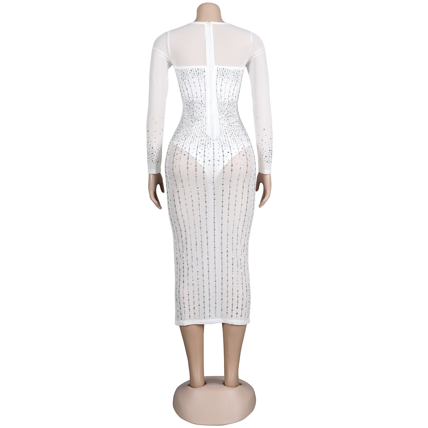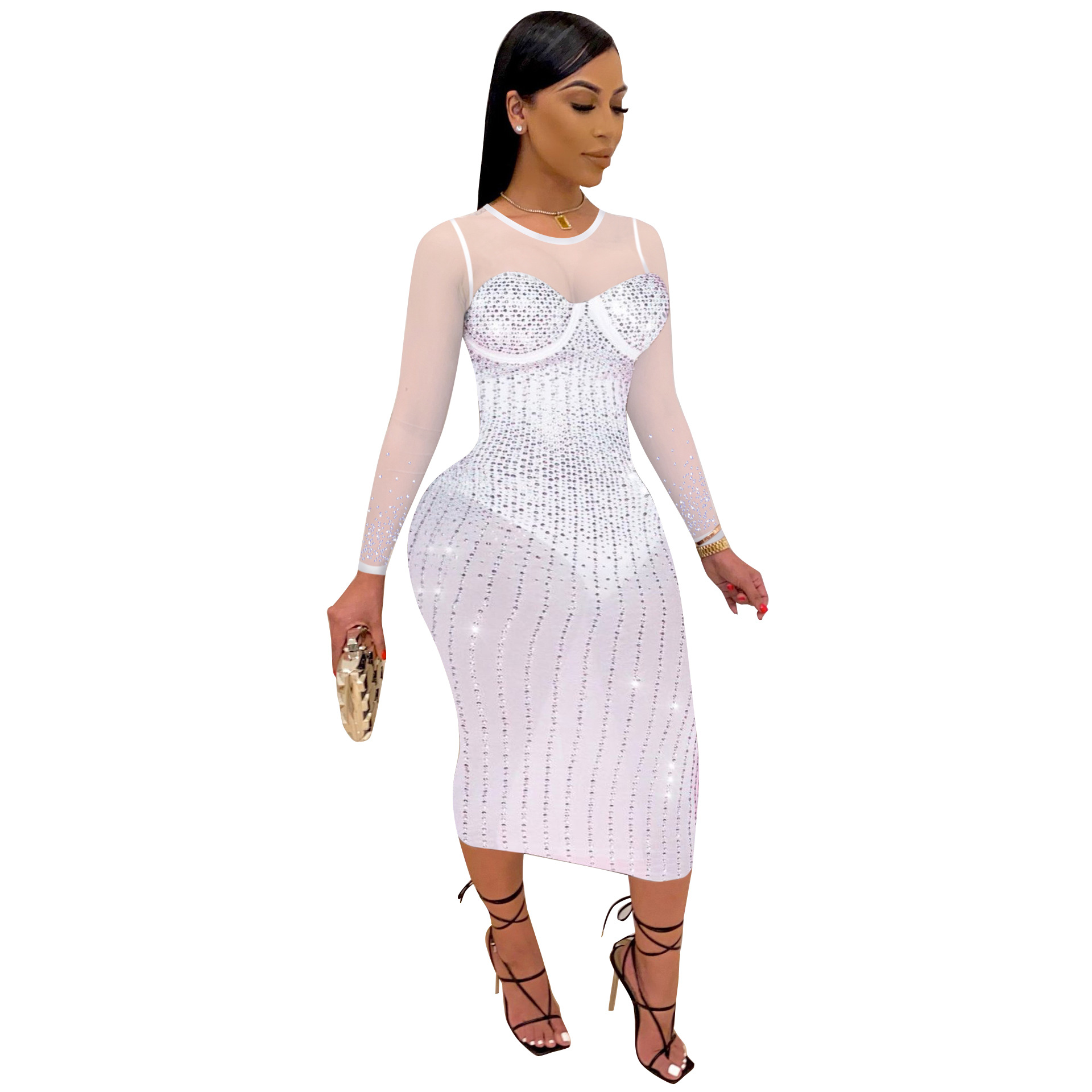 Diamond Long Sleeve Dress Nightclub Uniforms Plus size
