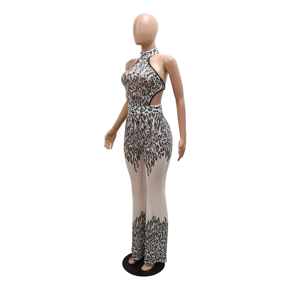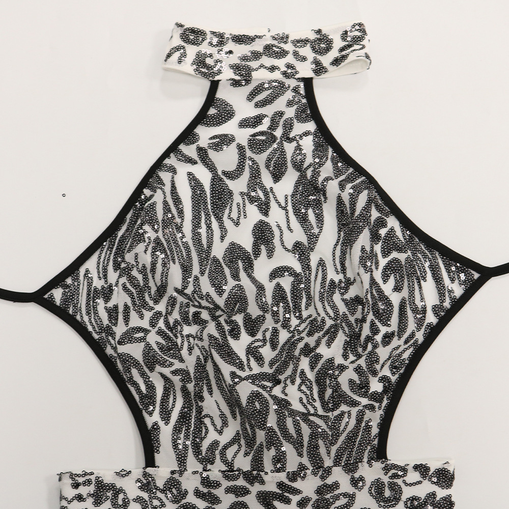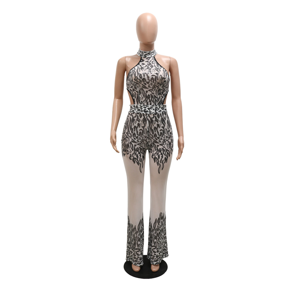 Fashion Casual Halter Strap Sequined Sheath Jumpsuit Waistline Slimming
