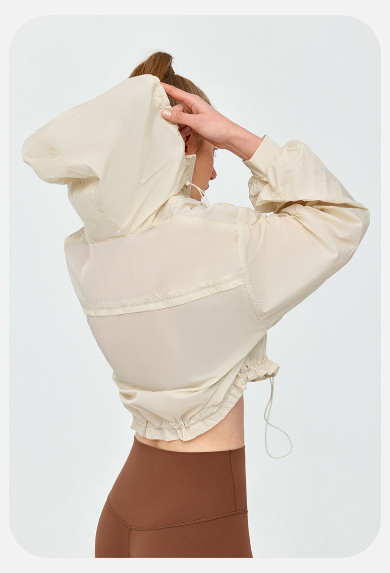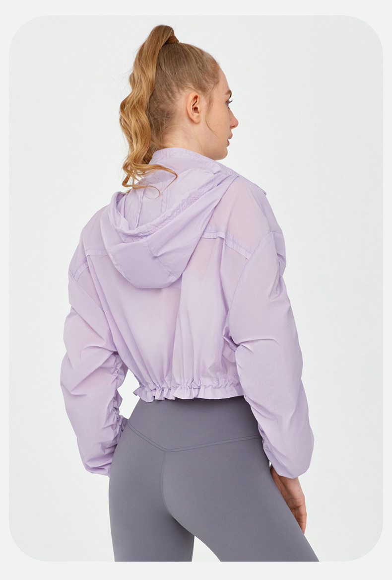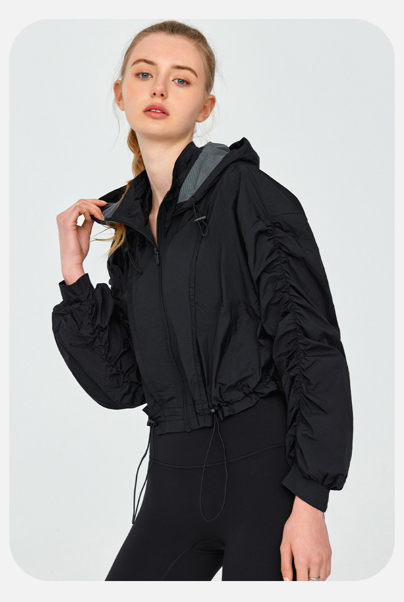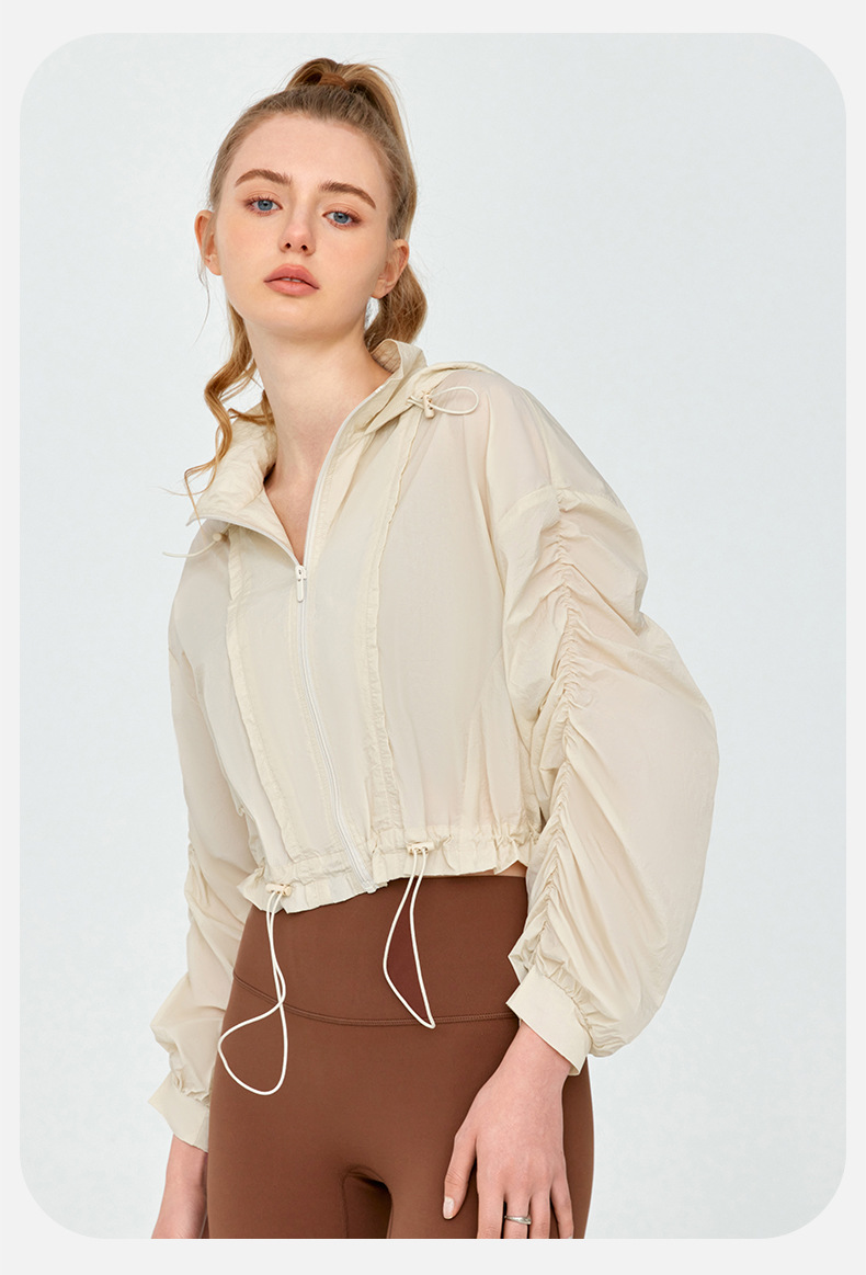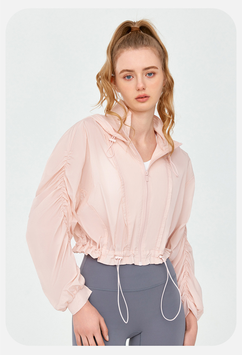 High Grade Sun Protective Clothing Women Outdoor Loose Short Breathable Sun Protection Long Sleeve Hooded Ruched Sun Protection Jacket