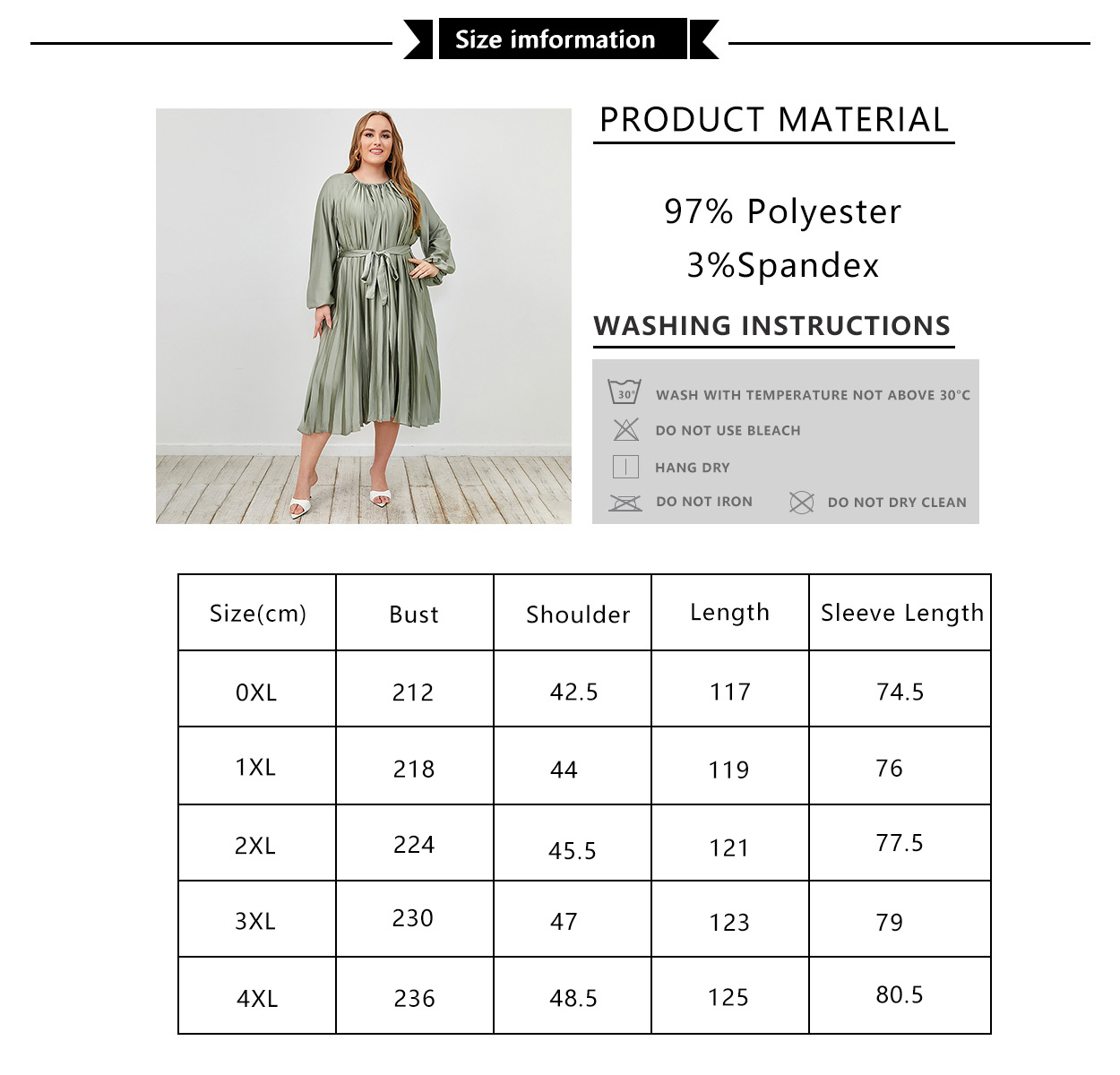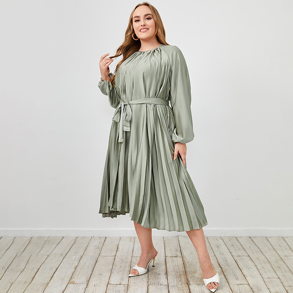 New Pleated Skirt Solid Color Green round Neck Elegant Slingback Dress Plus Size Women Clothing
