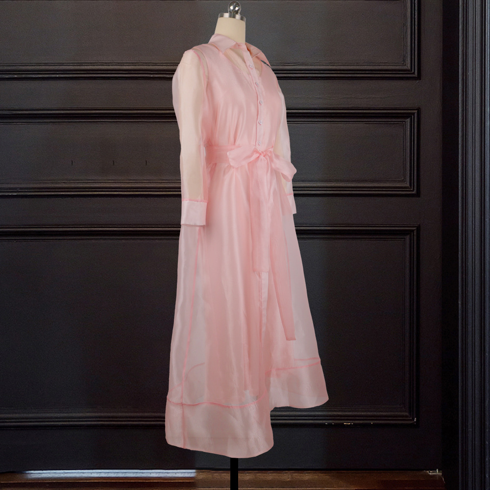 Sexy See-through Button Cardigan with Belt and Lining Large Size Casual Two-Piece Suit Women Dress