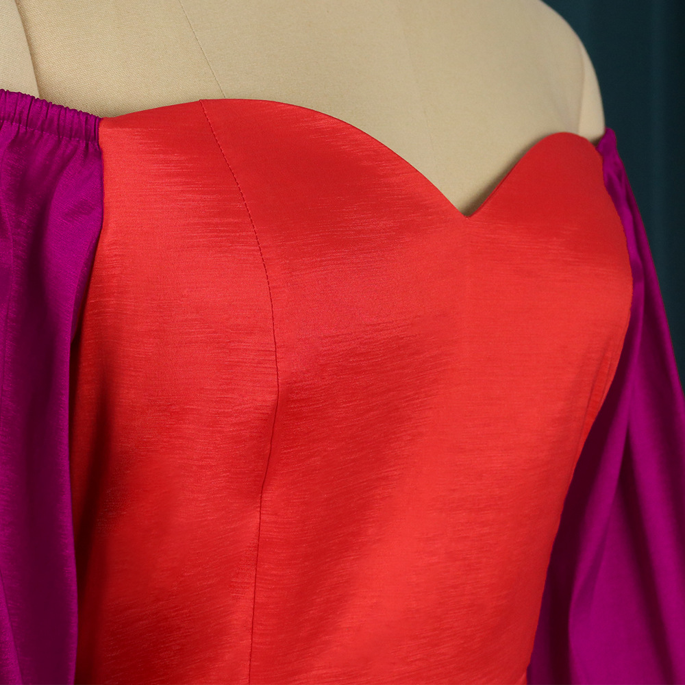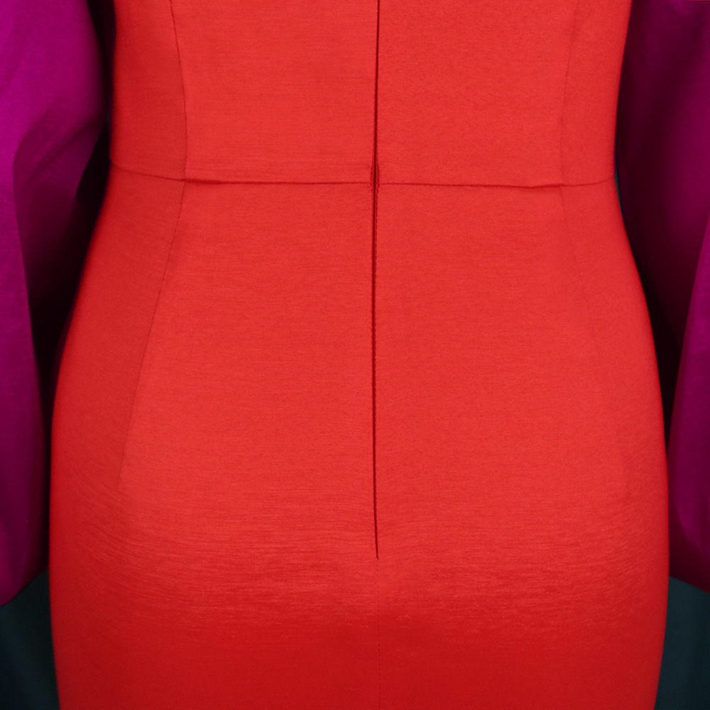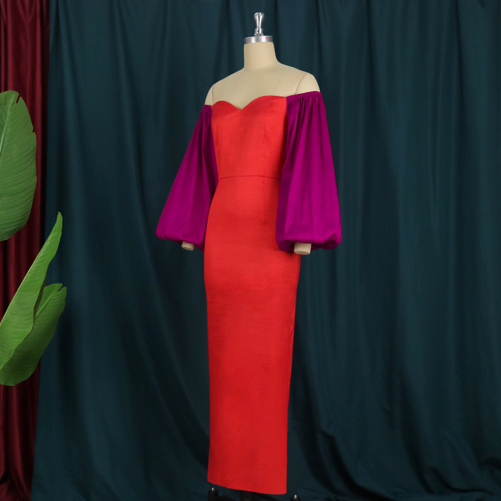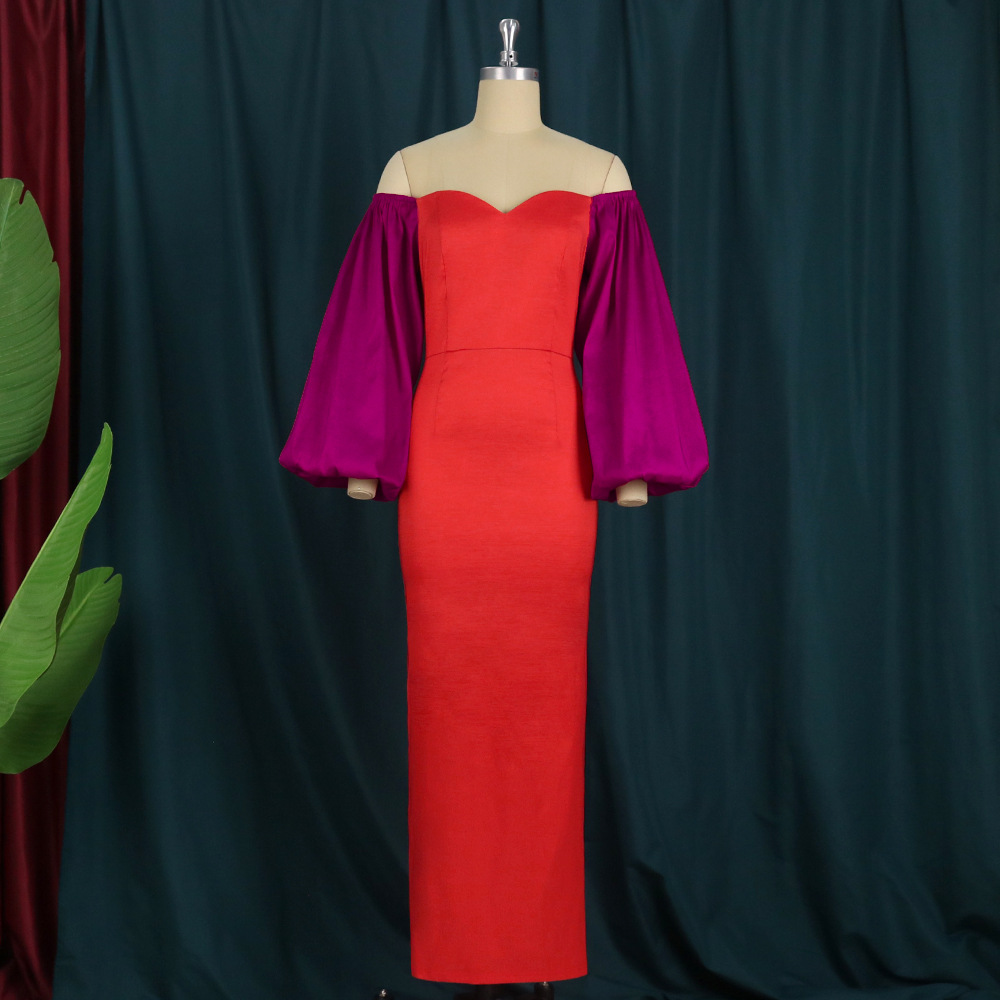 Sexy Tube Top Backless Lantern Sleeve Contrast Color High Waist Party Party Dress Women Dress Party Dress