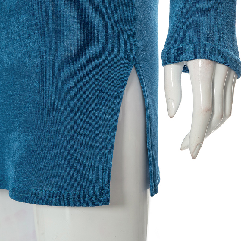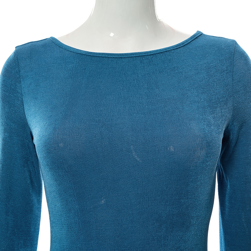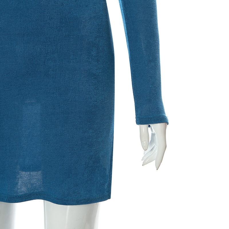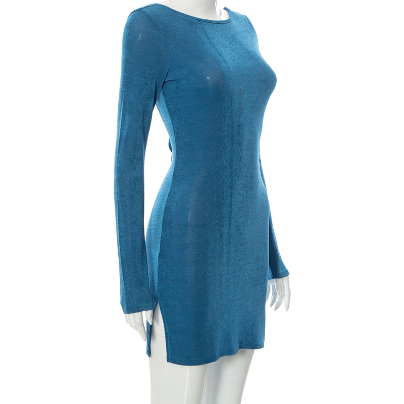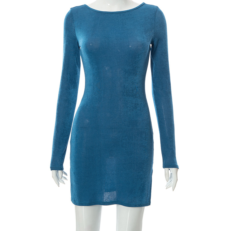 Spring Backless Sleeveless Solid Color round-Neck Long-Sleeved Dress Women
