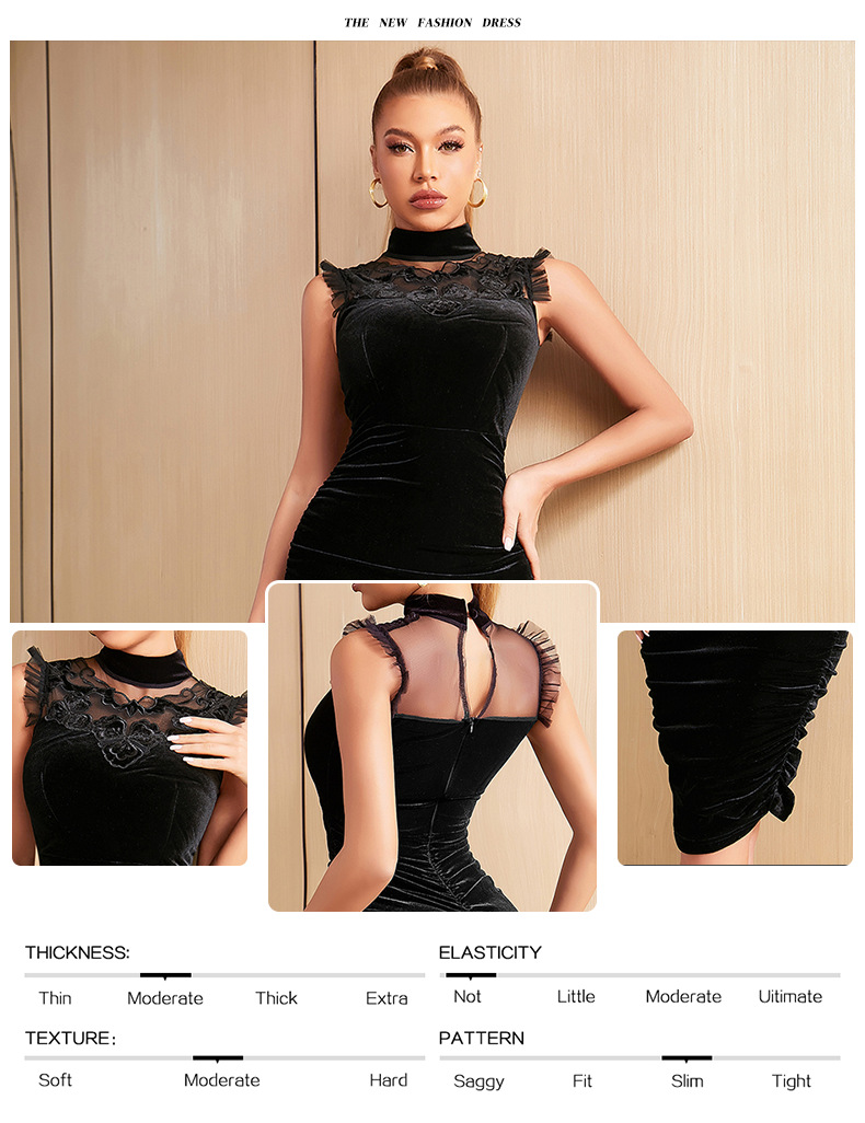 Spring Summer New Pleuche Dress Pure Black Lace Elegant Cocktail Party Evening Dress Women Clothing