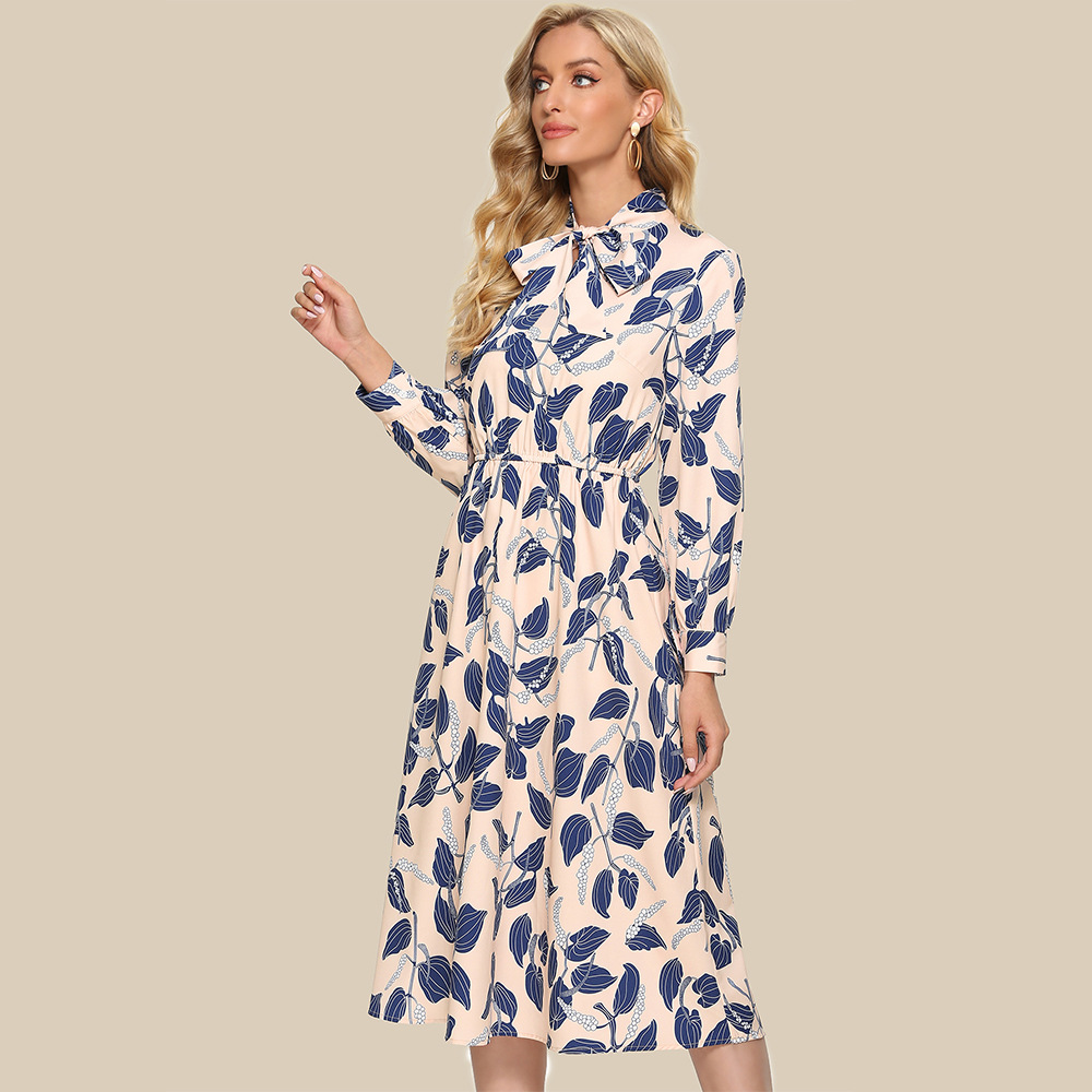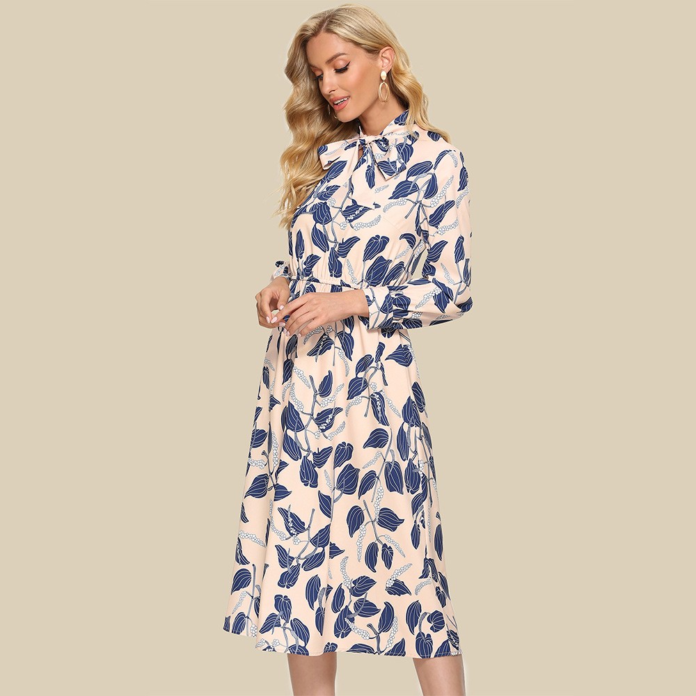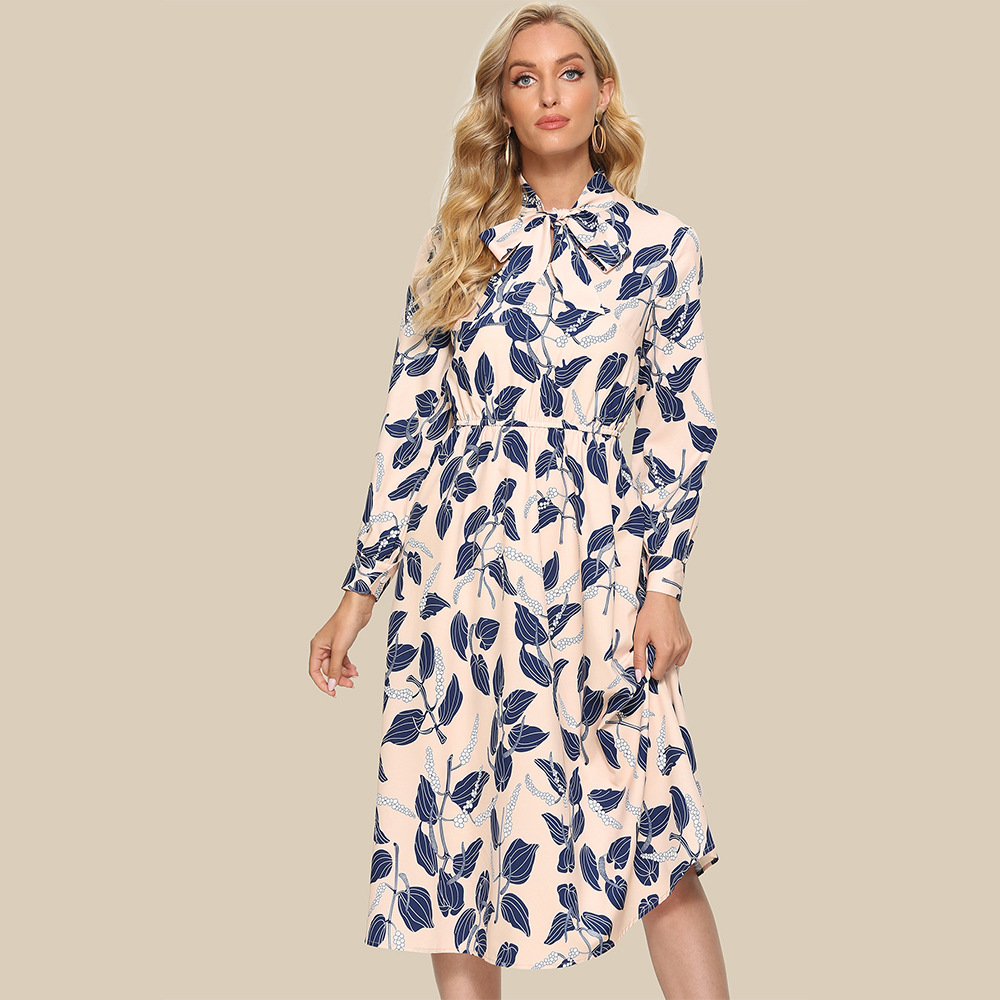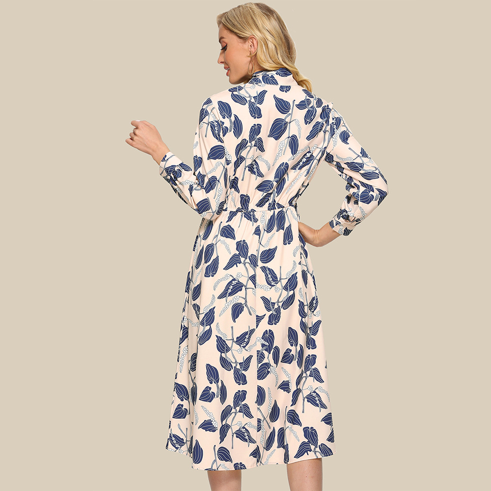2021 Spring and Summer New Women Clothing Printed Bohemian Style Shirt Long Sleeve Waist Dress