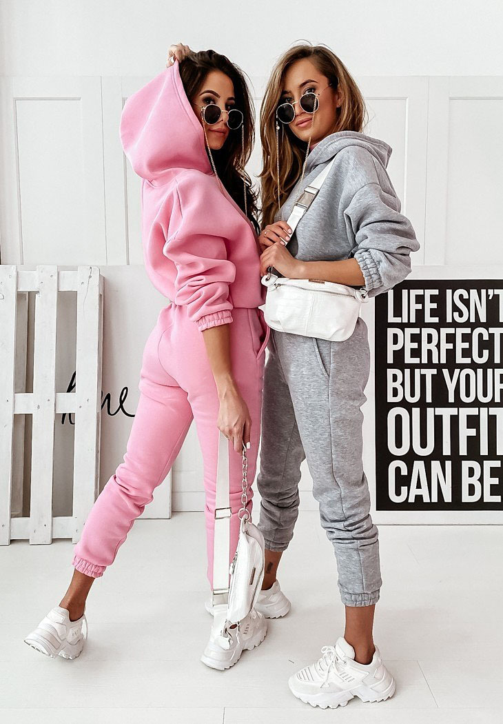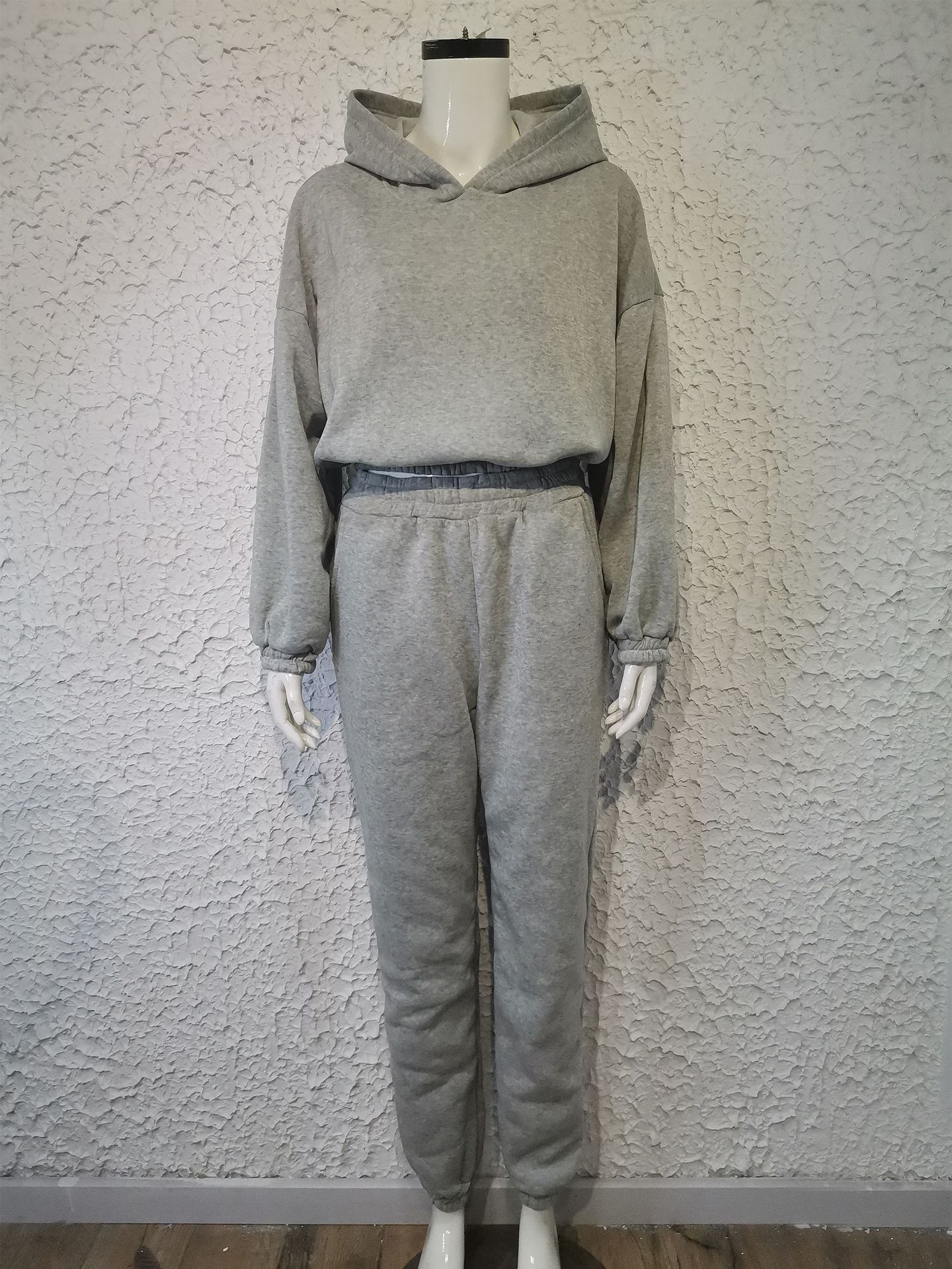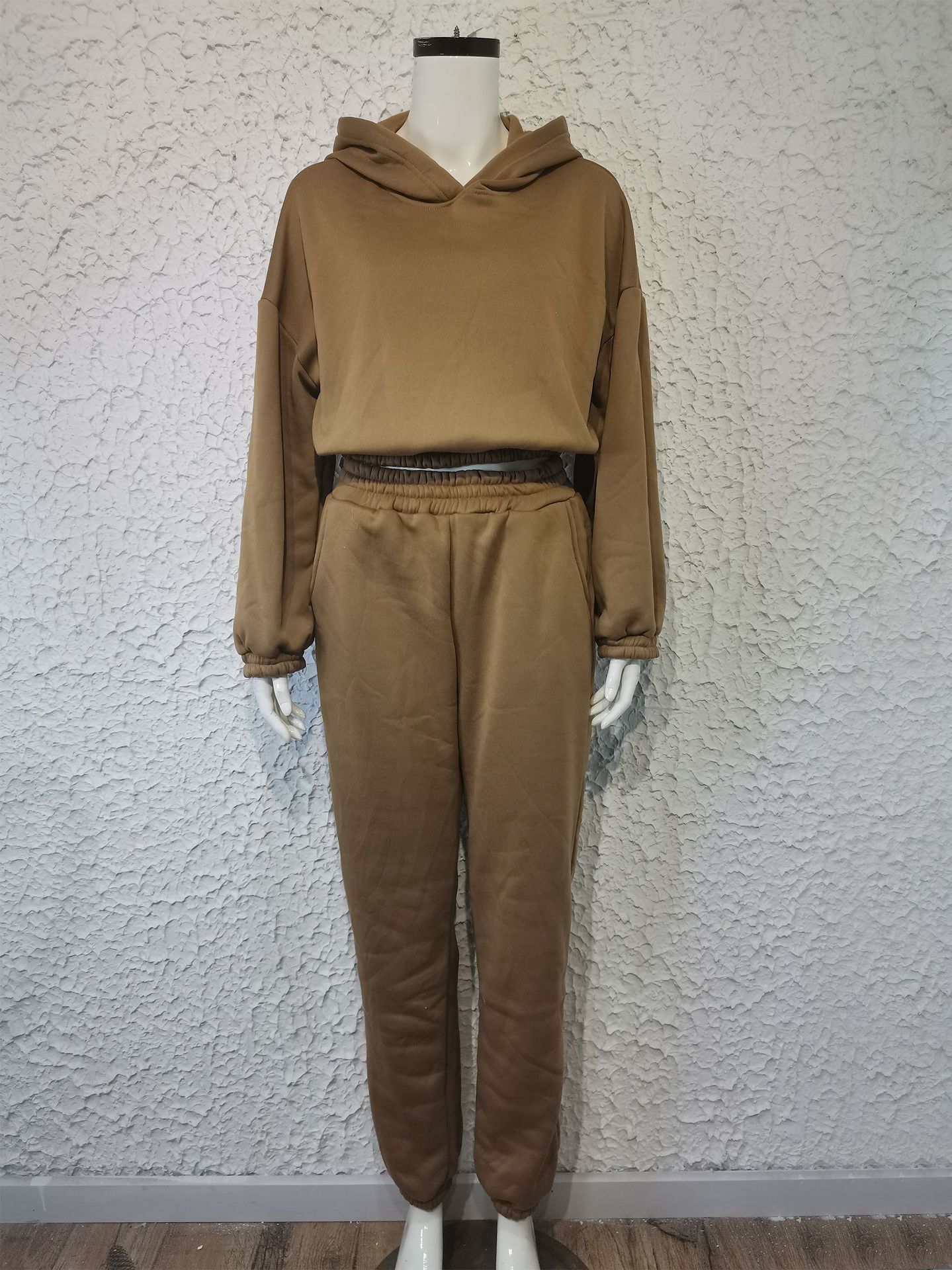 Autumn Winter New Women Clothing Elegant Slim Solid Color Hooded Long Sleeve Casual Suit