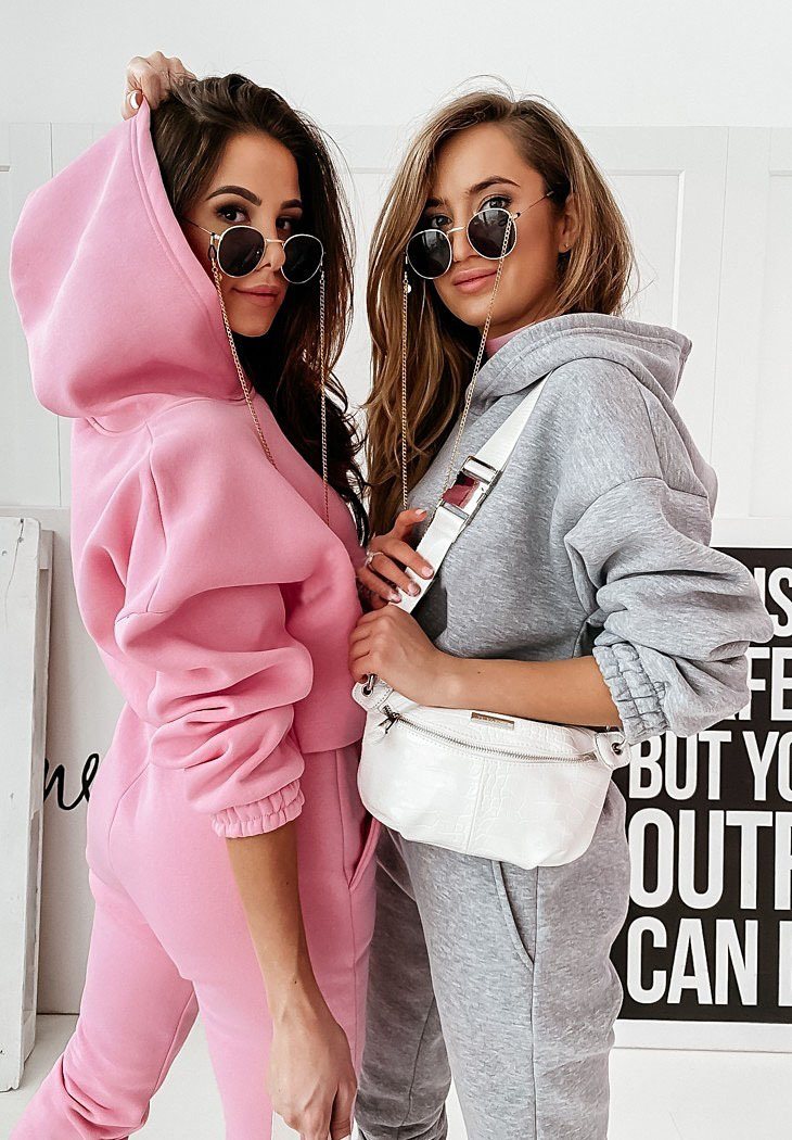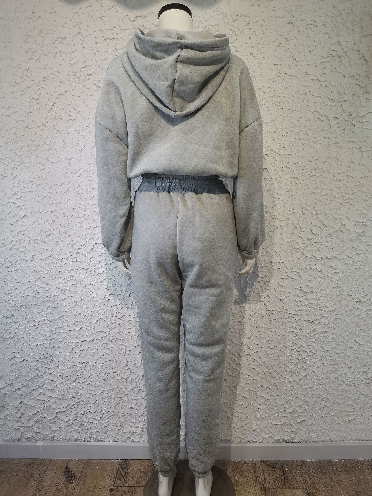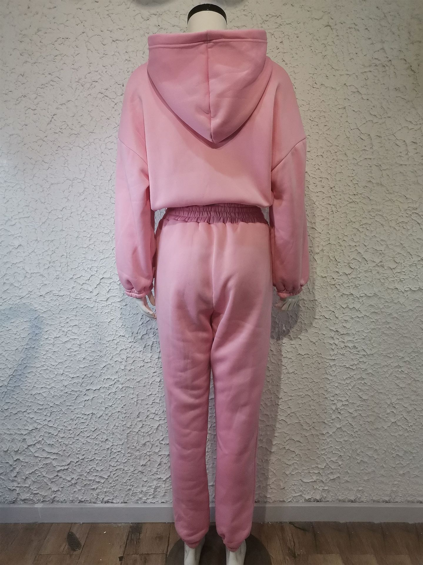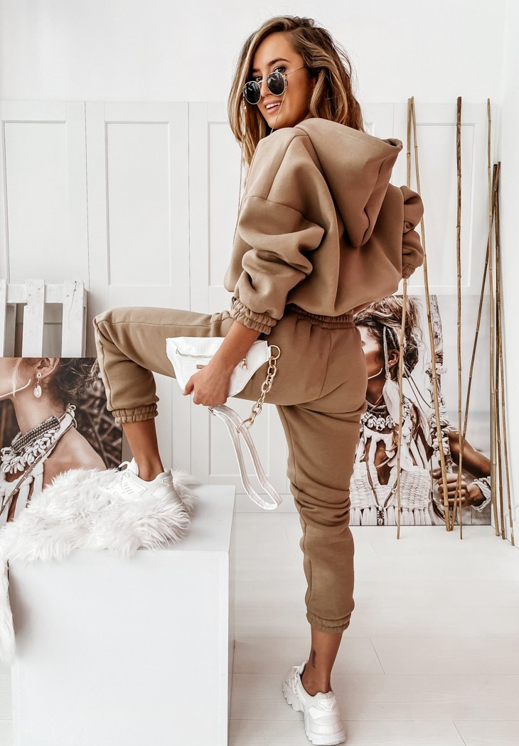 Autumn Winter New Women Clothing Elegant Slim Solid Color Hooded Long Sleeve Casual Suit