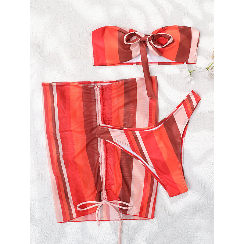 Bandeau Knot Bikinis High Cut Swimsuit Women Print Bathing Suits Swimwear