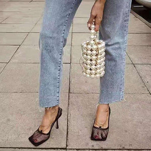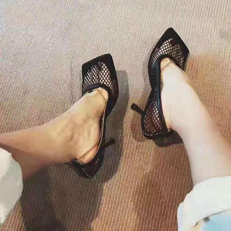 Sexy Mesh Square Toe High Heel Chain Stiletto