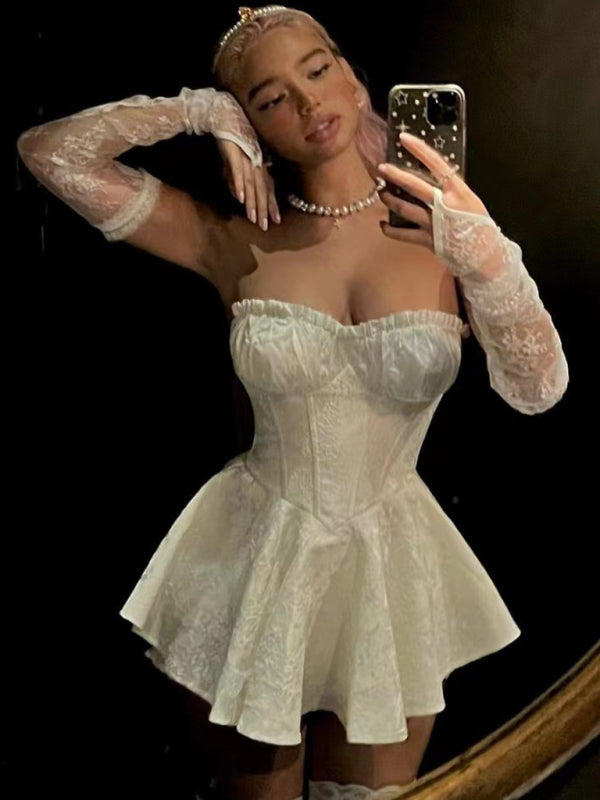 The lace jacquard tight-fitting sexy tube top dress is feminine, high-waisted and slim, and the birthday dress princess dress is suitable for many occasions. The simple design makes the boring season colorful and interesting. A variety of matching options make you confident and beautiful. Please use the sizing guide shown in our images. Please read each element of the sizing guide carefully before choosing a size. The size is measured manually, and there is an error of 1-3cm, which is normal.