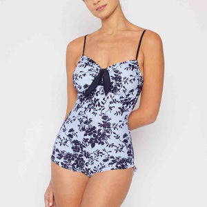 Vintage-inspired and regal, this toile floral one-piece features bows, a frill trim, and a sweetheart neck. The frill around the leg openings extends the cut for extra coverage. Adjustable straps and removable pads make this customizable for your body. Add a long kimono-style cover-up and a wide-brim straw hat to finish off your pool-day look.