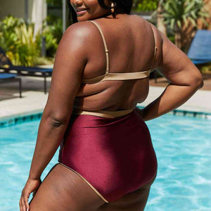 Featuring a contrast waistband and binding, this one-piece swimsuit will make you a shining star! It fits nice and snug so you can dive into the deep end, swim laps, or break out your board without any wardrobe malfunctions. Plus, it's made with shiny fabric and an open-back detail for some extra pizazz.