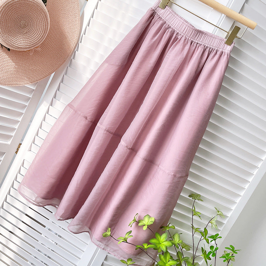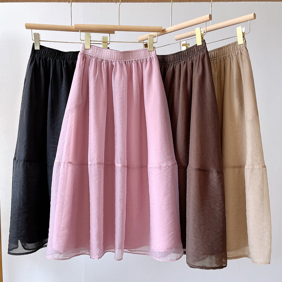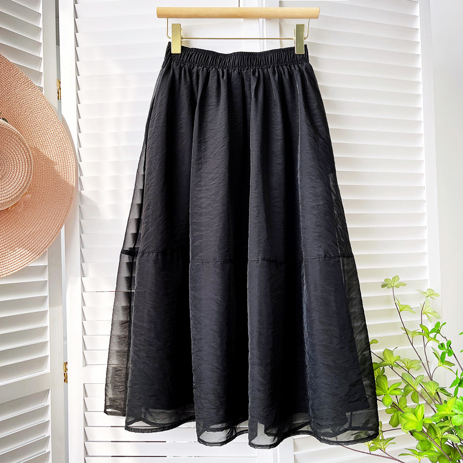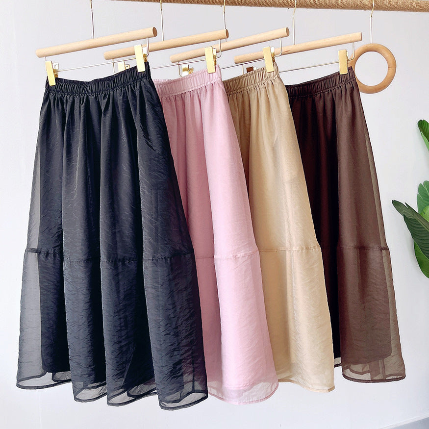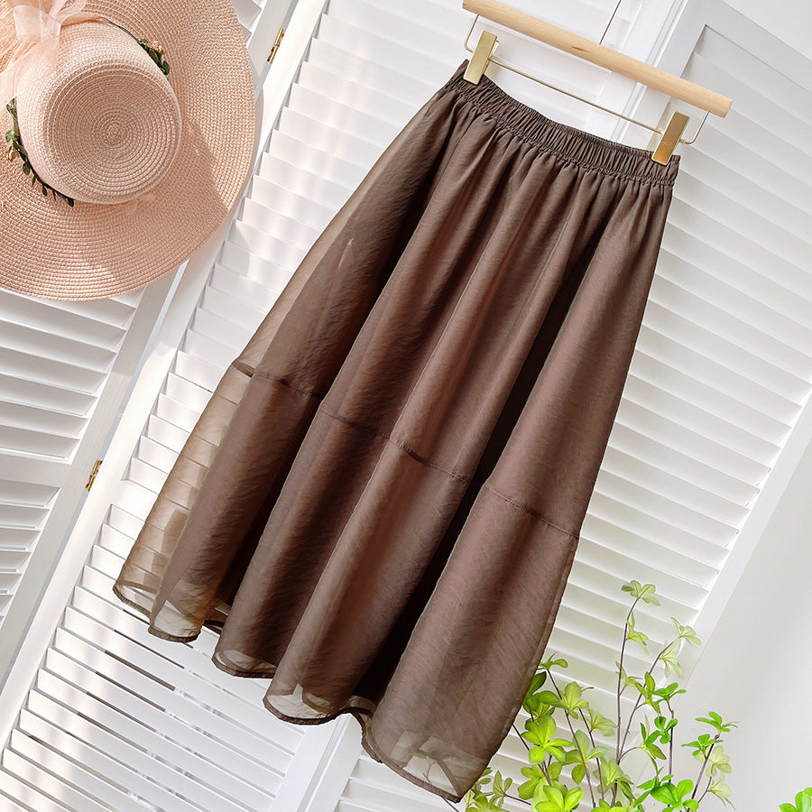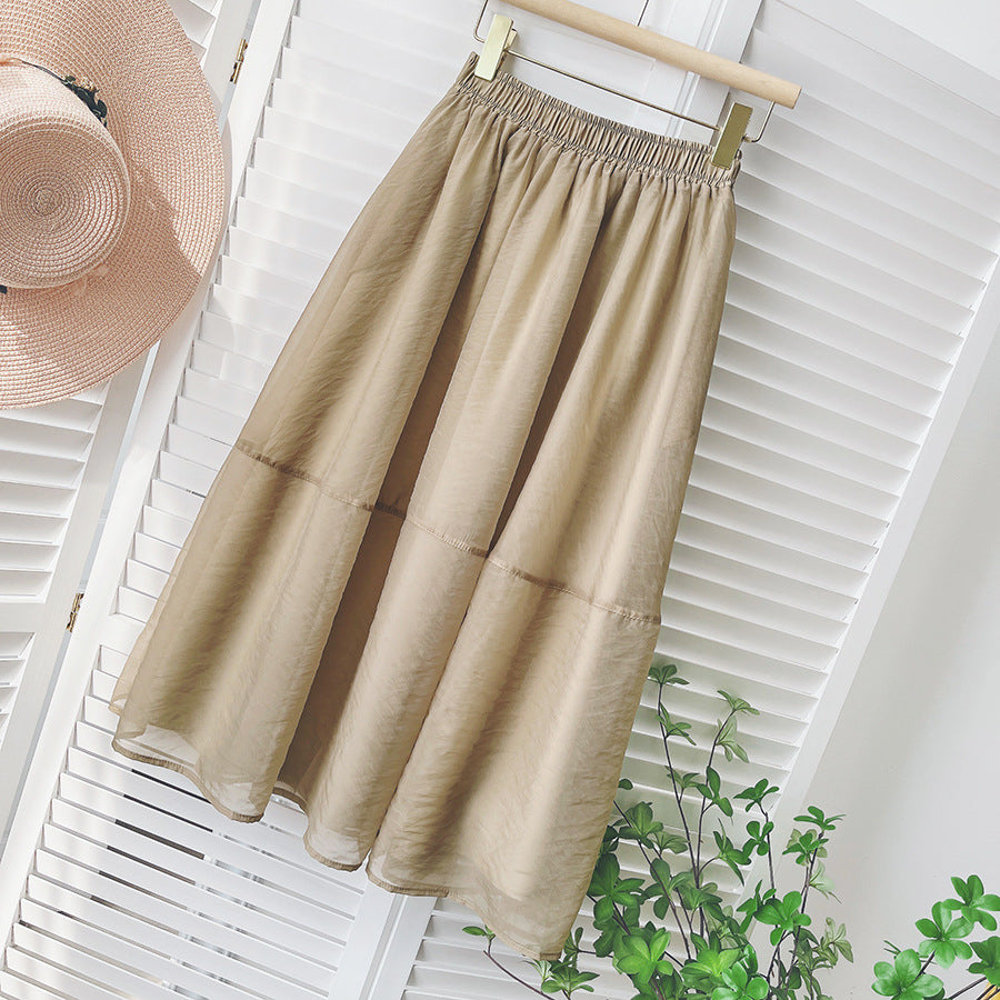Midi Skirt Women New High Waist Bubble Skirt Retro Hepburn Simple Elegant Umbrella Skirt
