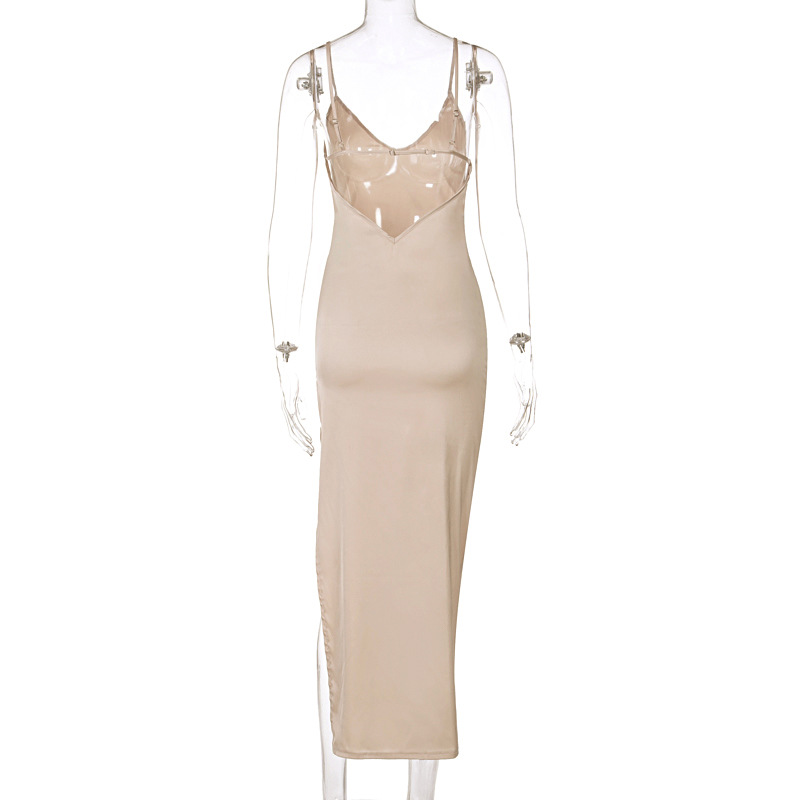 Popular Products Spring Summer New Sexy Backless V-neck Split Dress Elegant Women Fashion