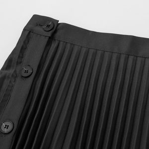 Simplee Chic High Waist Women Pleated Skirt Buttons A-line Autumn Winter Female Midi Skirts Elegant Office Ladies Black Skirts