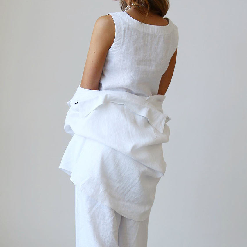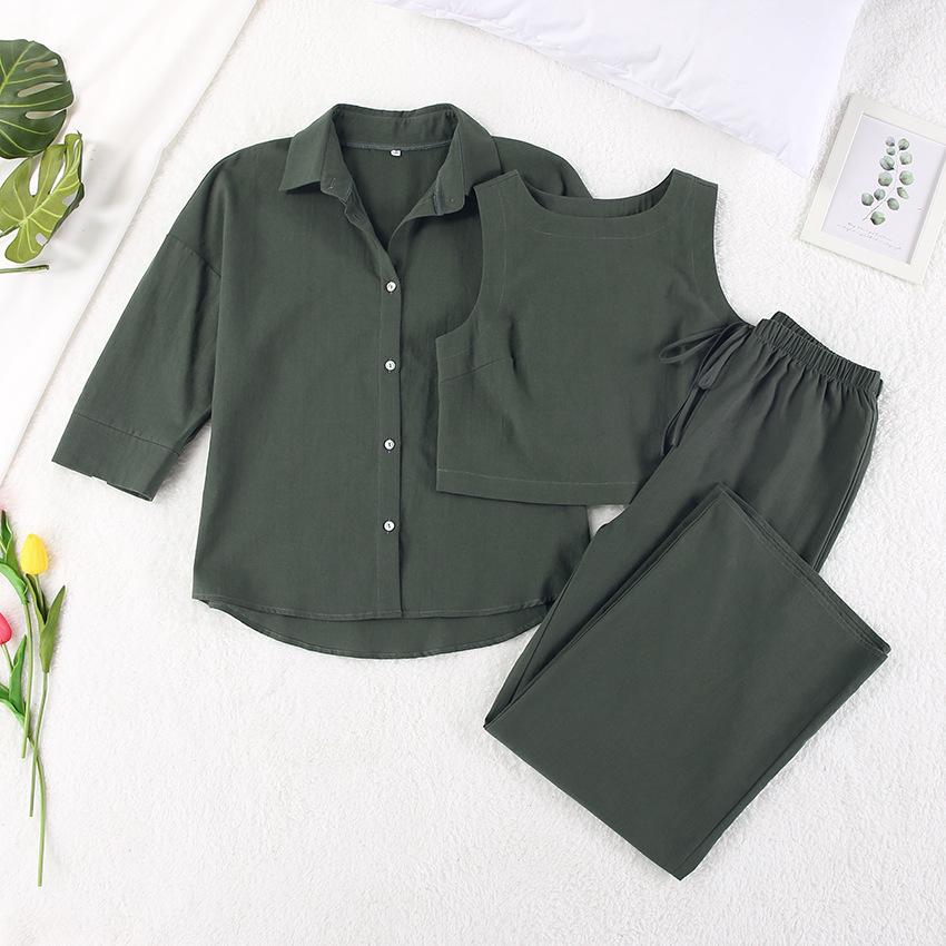 Spring New Cotton Linen Top Trousers Coat Three-Piece Fashion Pajamas Simple Outdoor Home Wear for Women