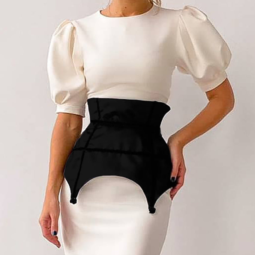 Spring round Neck Short Temperament Commute Tight High Waist Dress Puff Sleeve