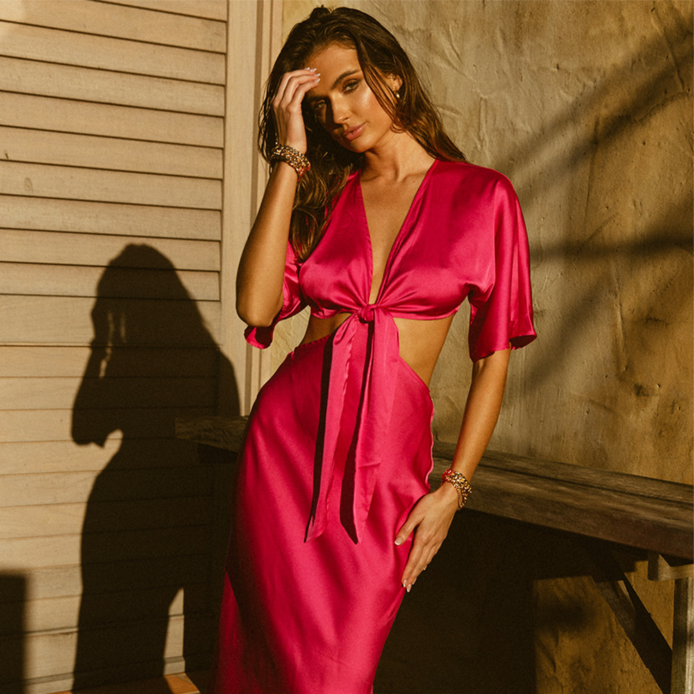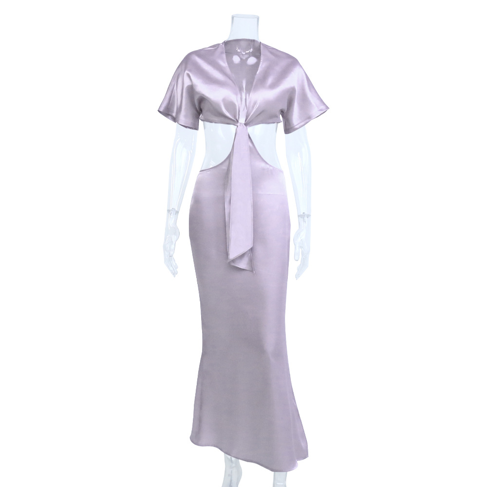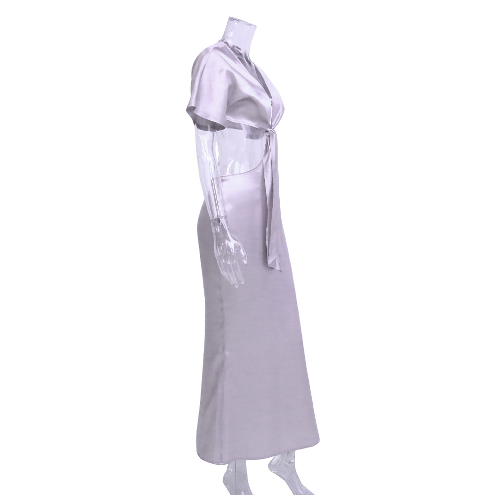 Summer New V-neck Low-Cut Lace up A- line Dress Elegant Hepburn Style French Dress Women