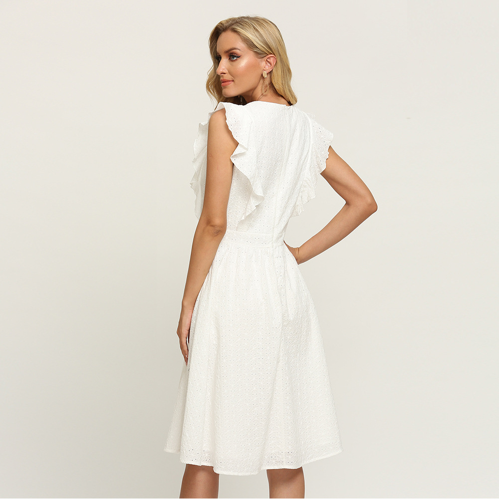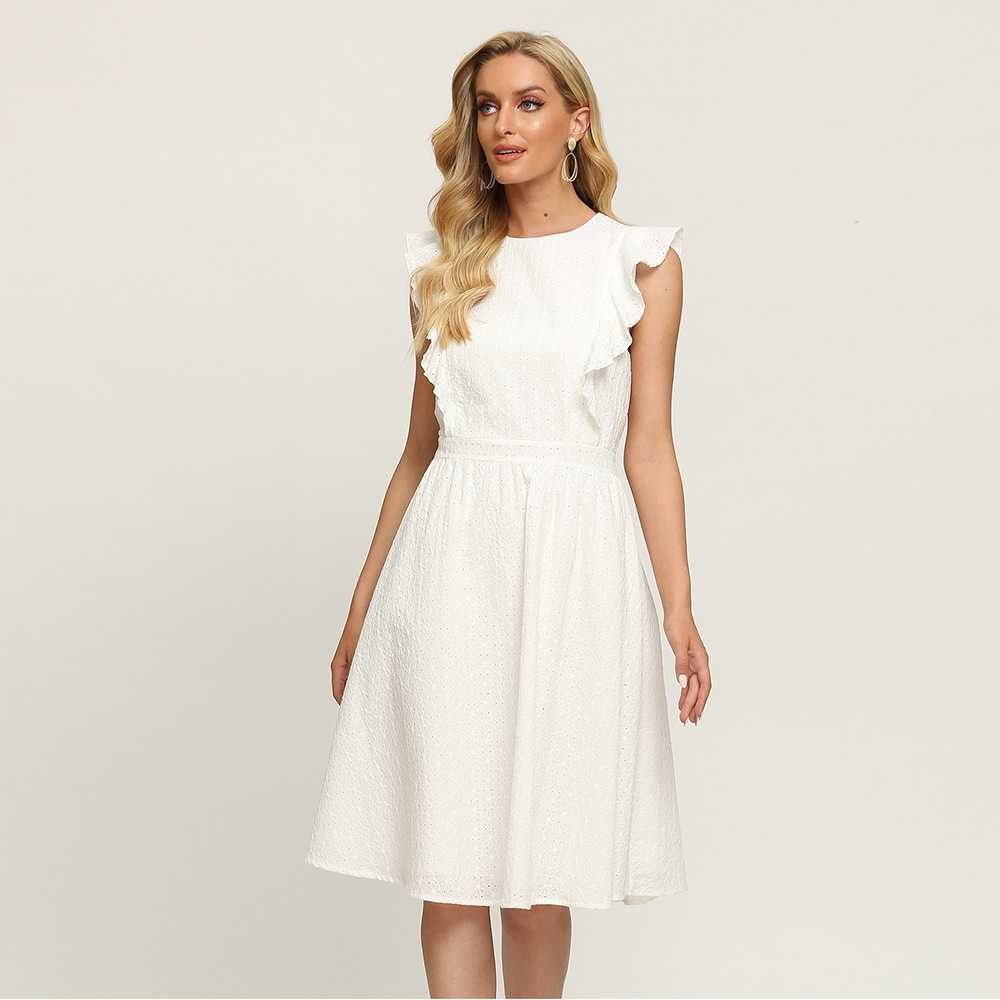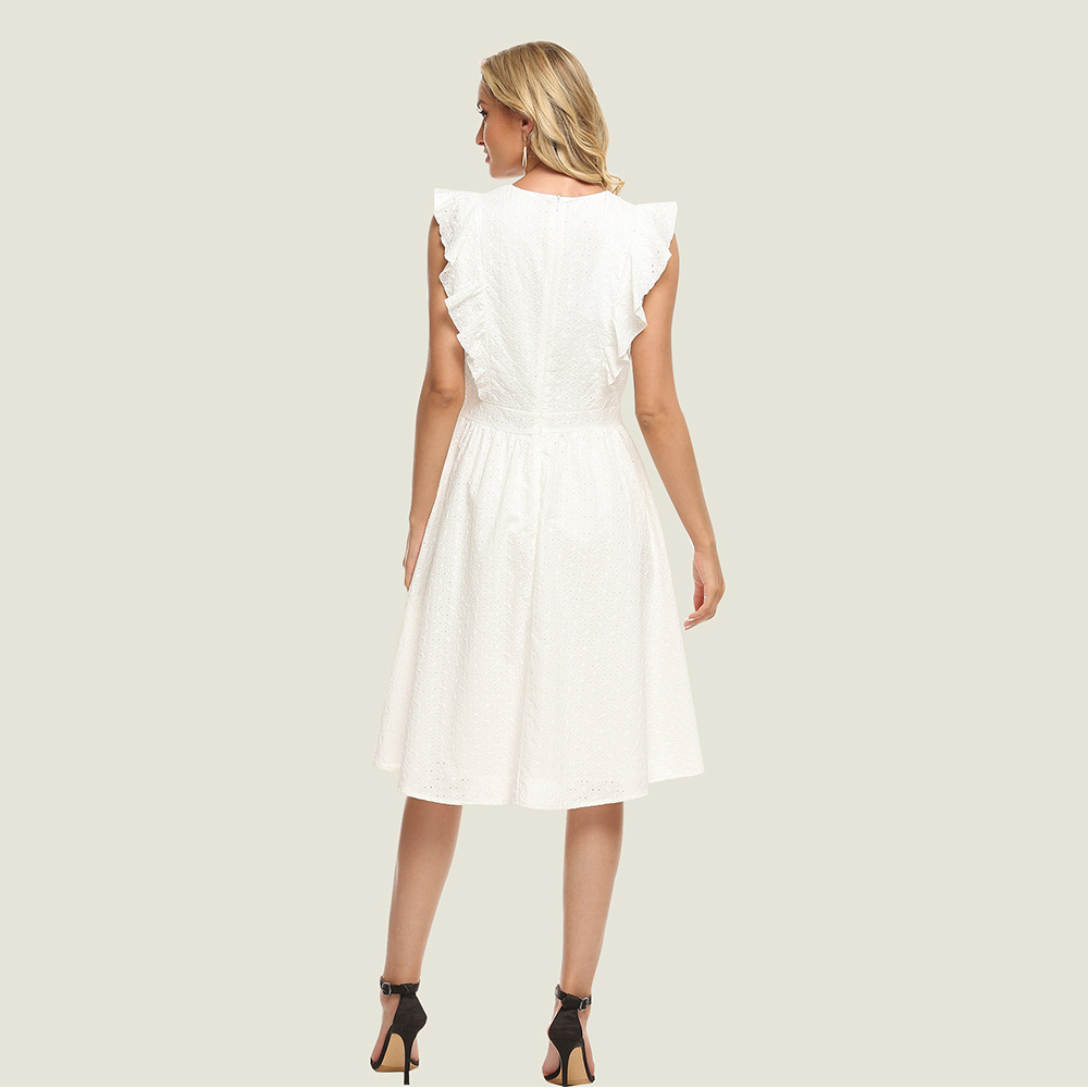 Summer New Women Dress Elegant Graceful Solid Color Sleeveless Ruffled Dress