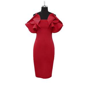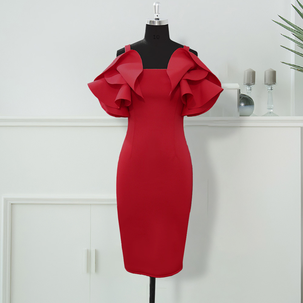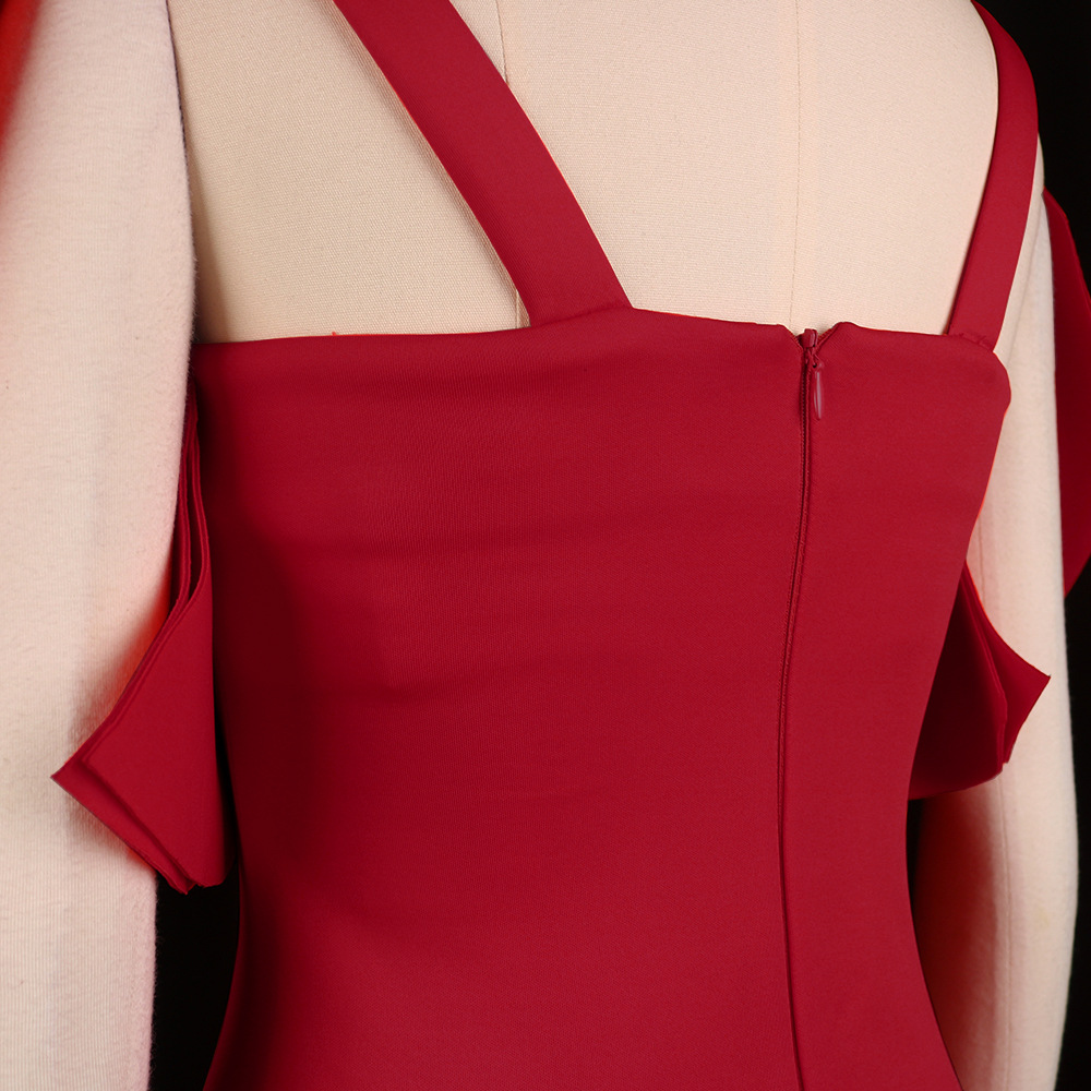 Summer Red Slip Wooden Ear Elegant Simple Sheath Dress off Shoulder Dress
