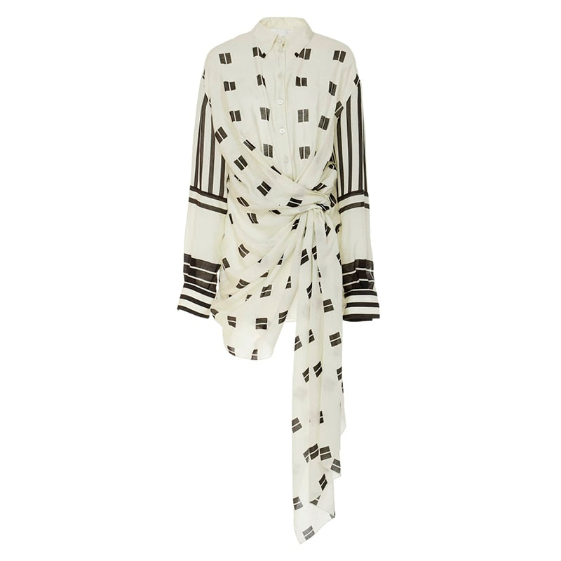 Lapel Collar Long Sleeve High Waist Tunic Irregular Dress
