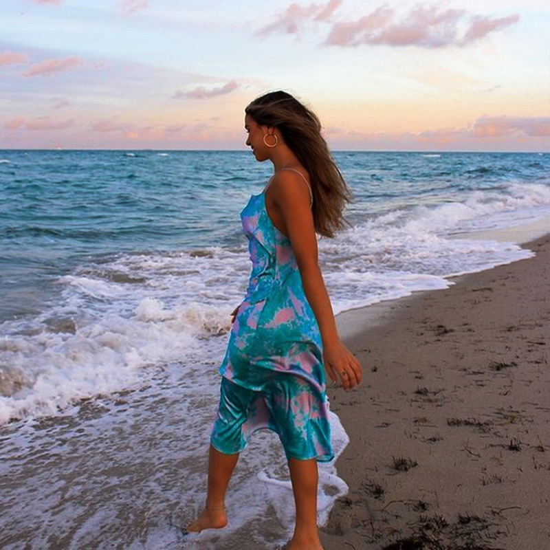 Women Clothing Summer Printed Suspender Dress Backless Fashion Casual Dress Fashion
